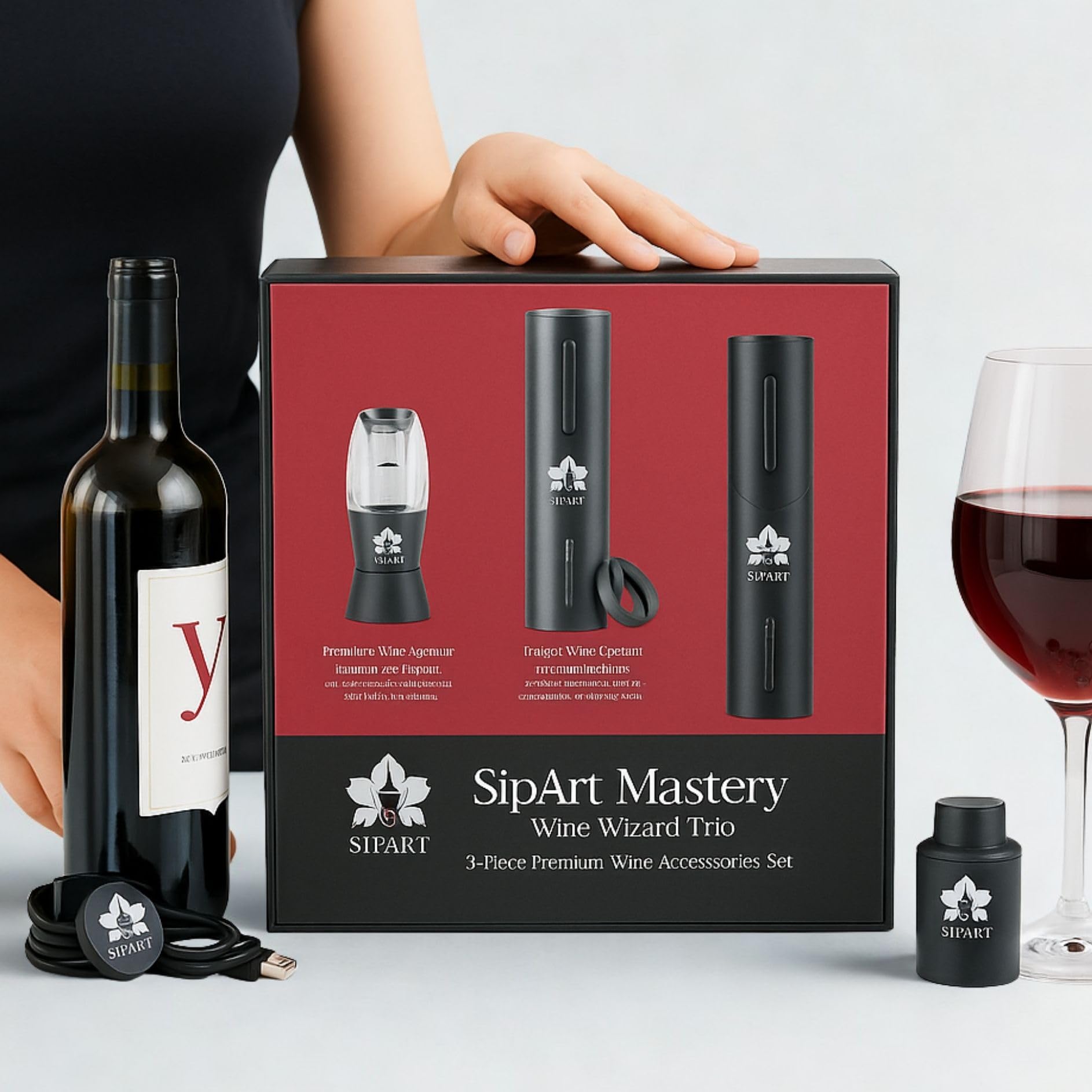 Set de regalo de vino eléctrico con caja de regalo, juego recargable de abridor de vino eléctrico, 5 en 1, accesorios de vino de p