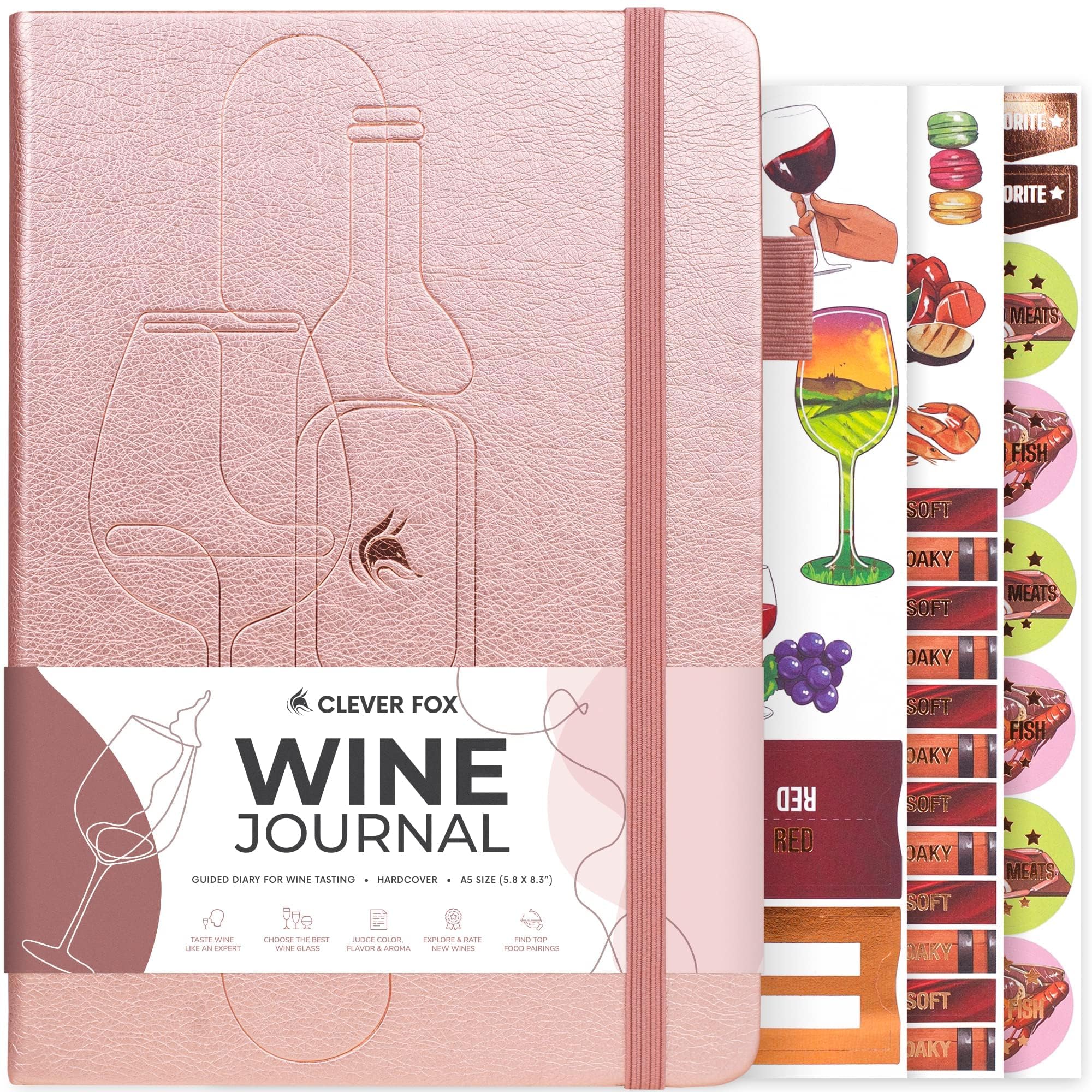 Clever Fox Diario de vinos para cata de vinos – Diario guiado de vinos y libro de registro con instrucciones de degustación, rueda
