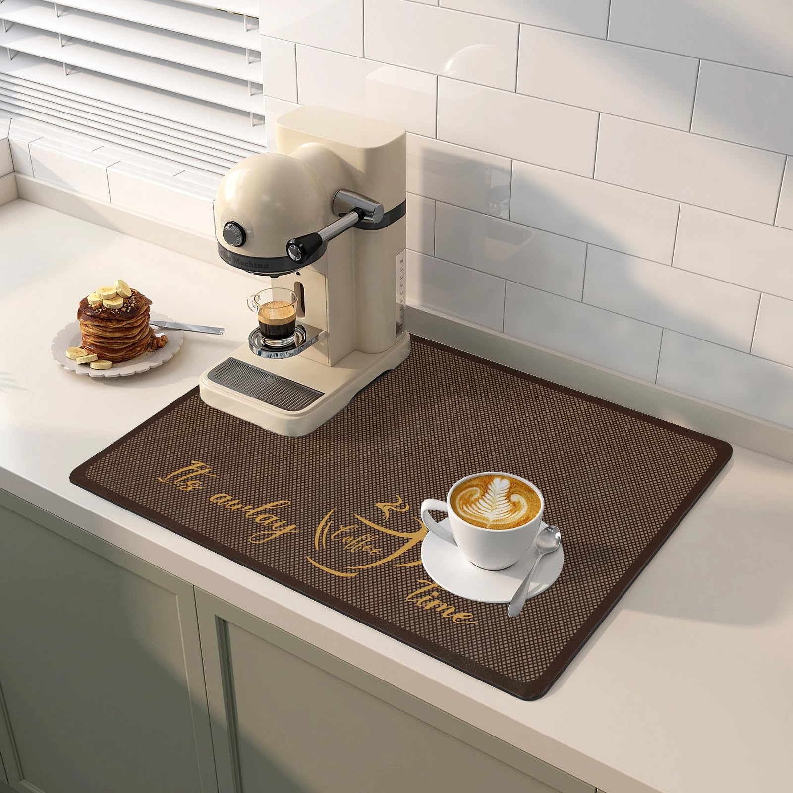 SUEH DESIGN Tapete de café, tapete absorbente para secar platos, 23.6 x 15.7 pulgadas, tapete de café de secado rápido, tapetes de
