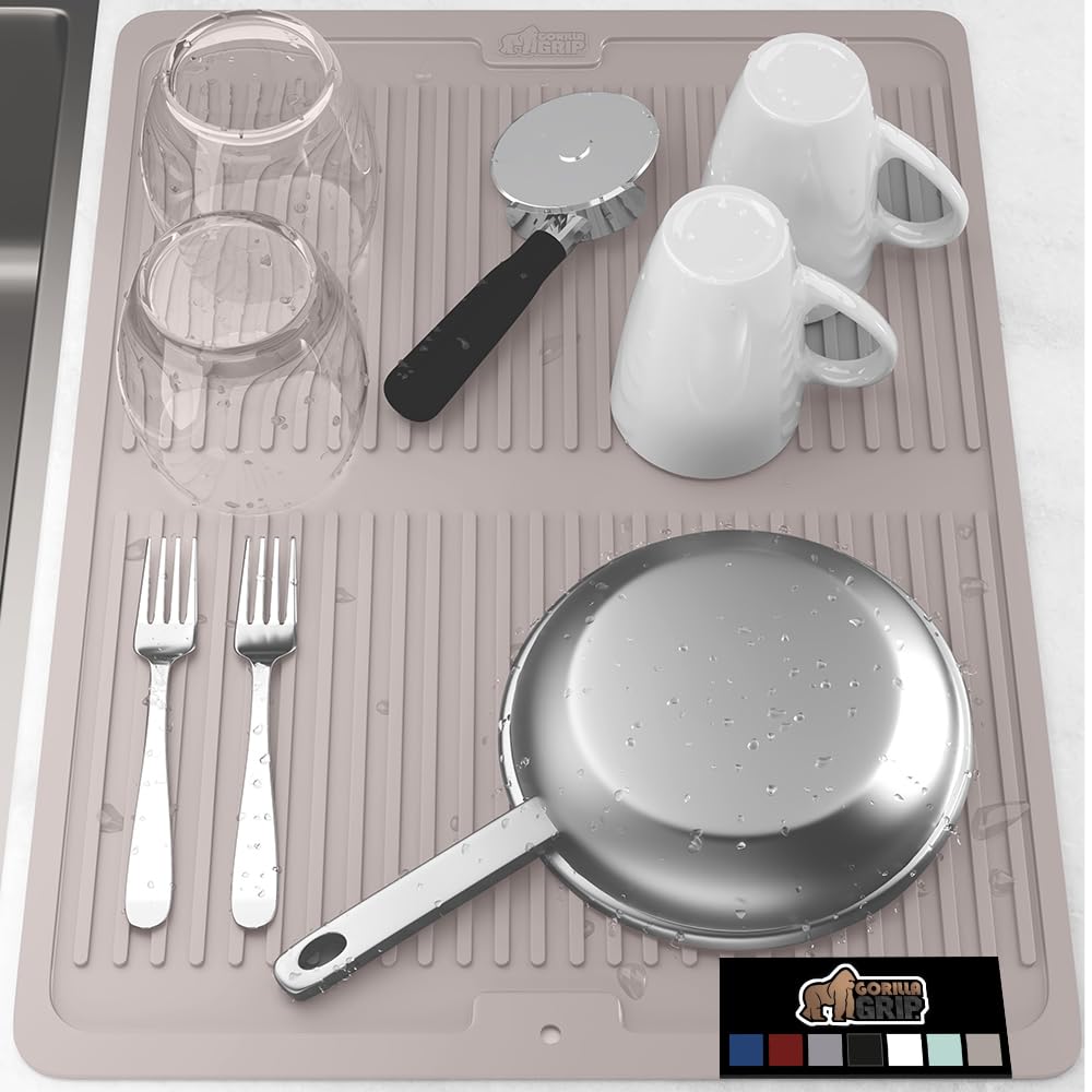 GORILLA GRIP Tapete de secado de platos de silicona patentado 100% sin BPA para encimera de cocina, 18 x 24 pulgadas, diseño acana