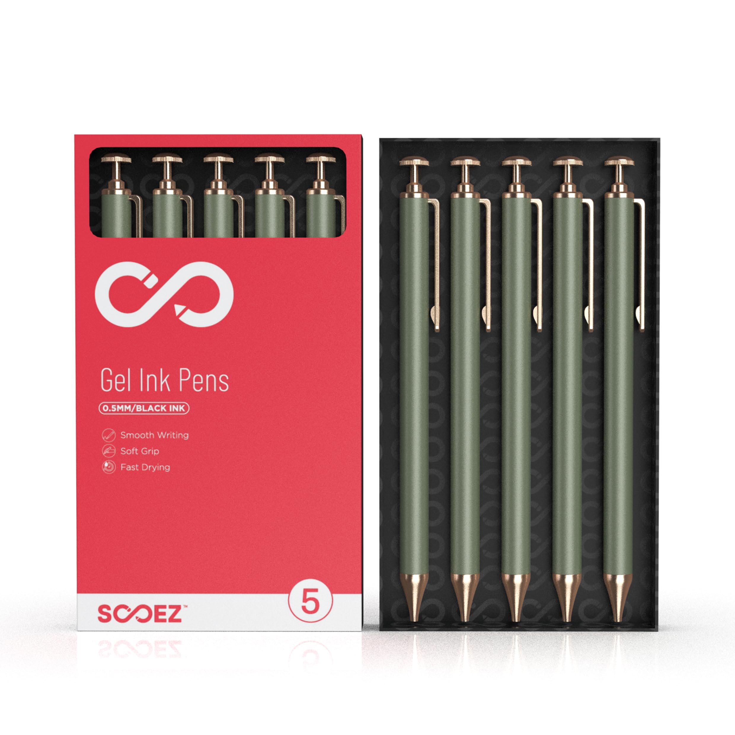 Sooez Bolígrafos de gel, paquete de 5 bolígrafos de punta fina de 0.020 in, barril de metal elegante, juego de bolígrafos de regal