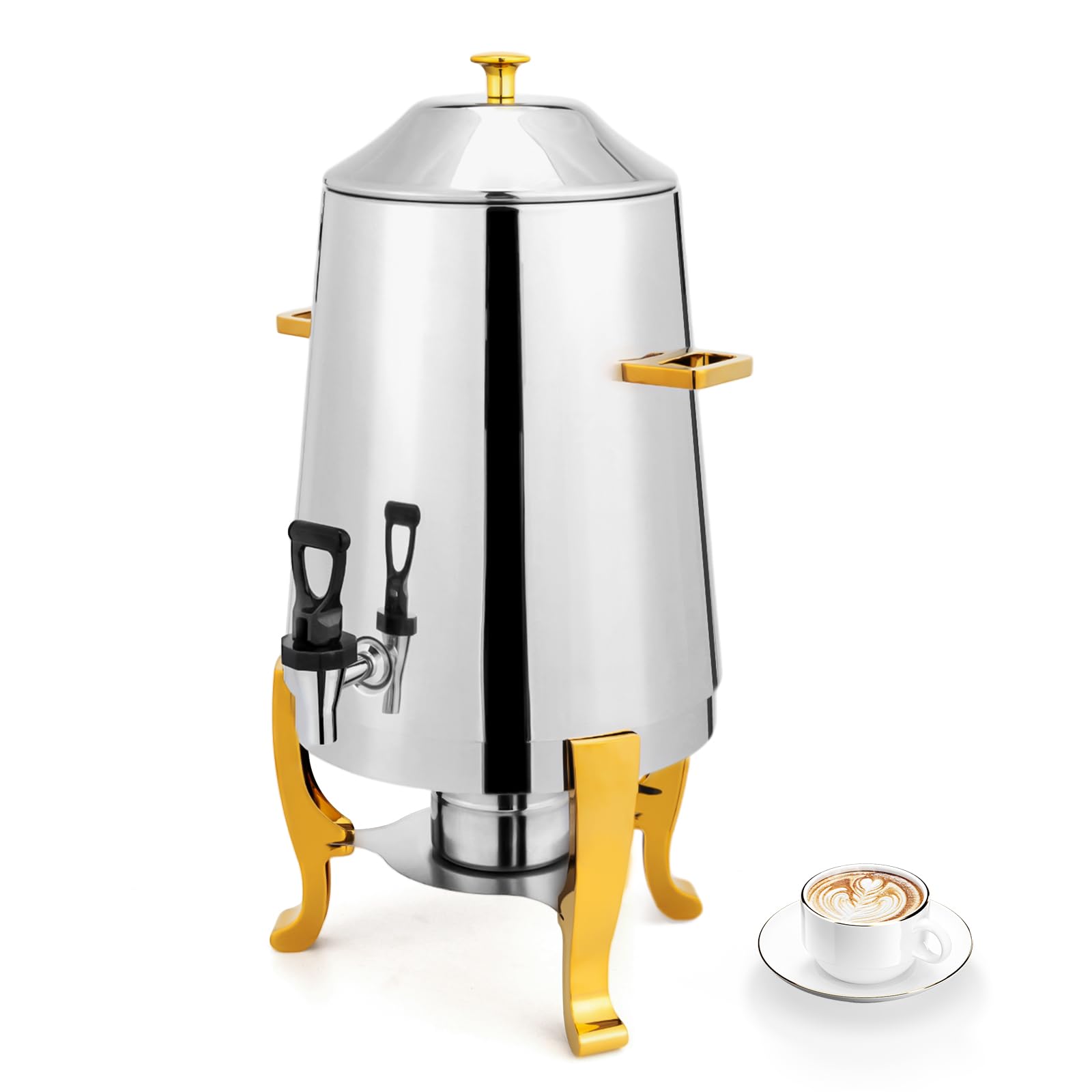 ROVSUN Dispensador de bebidas de 3.5 galones/13L con acento dorado, urna de acero inoxidable para café con soporte para combustibl