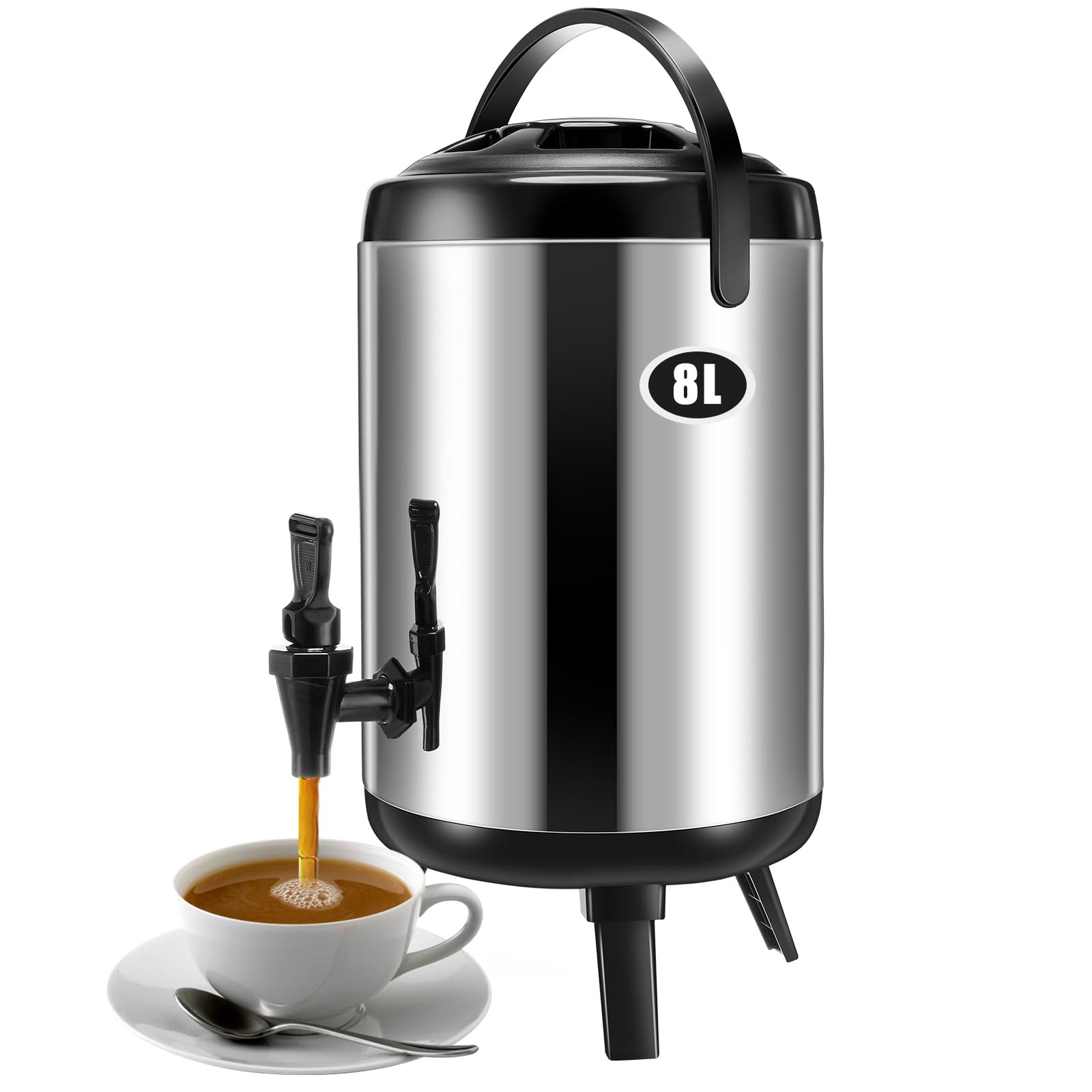 Mifoci Dispensador de bebidas aislado de acero inoxidable, dispensador de bebidas de agua caliente, urnas de café, soporte para be