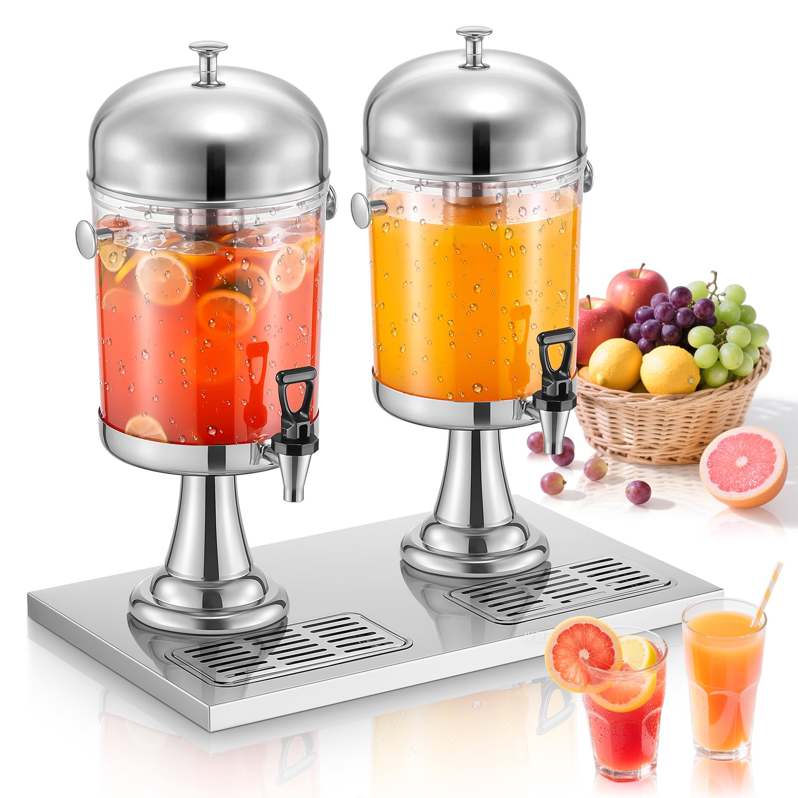 Dispensador de bebidas de 1.5 galones para fiestas, dispensador doble de bebidas con soporte, grifo de acero inoxidable, 8 etiquet