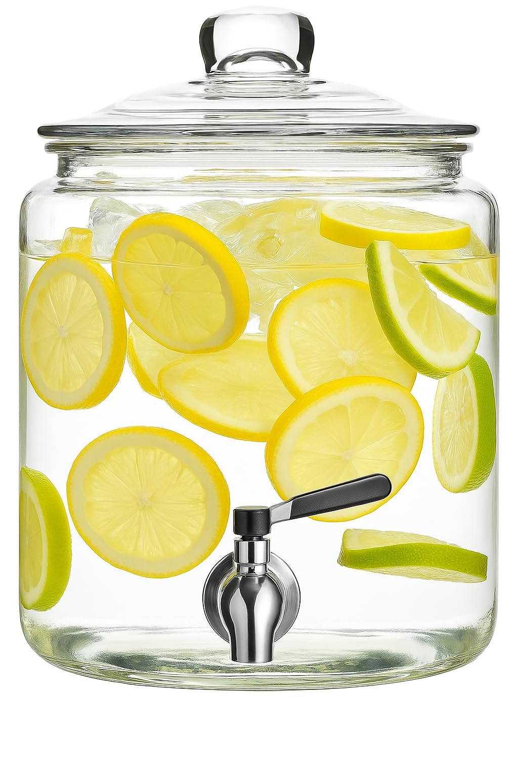 Crutello Dispensador de bebidas de vidrio para exteriores con espita de acero inoxidable y cilindro de hielo, dispensador de bebid