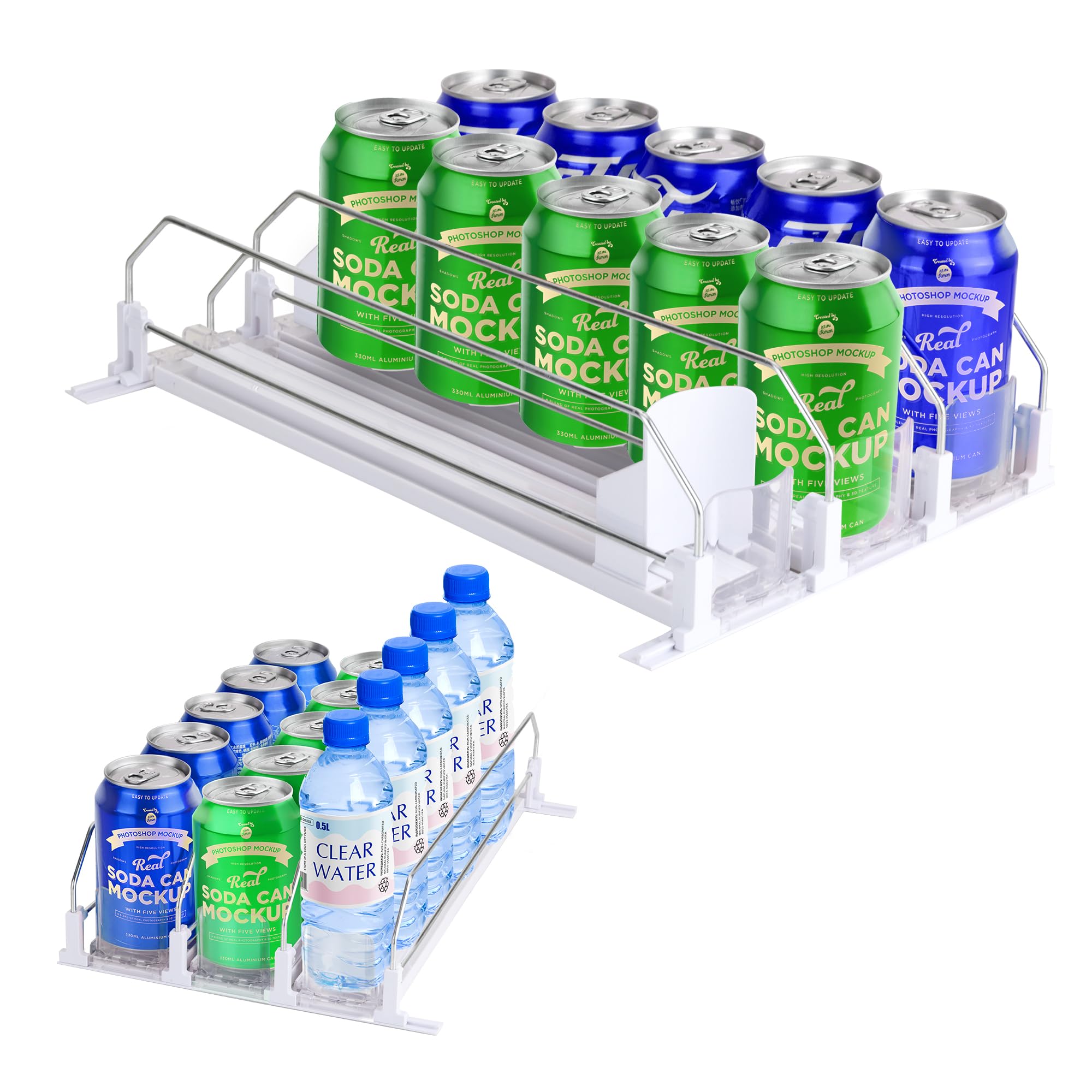 Organizador de bebidas mejorado para refrigerador, organizador de latas de soda de ancho ajustable con deslizamiento automático, d