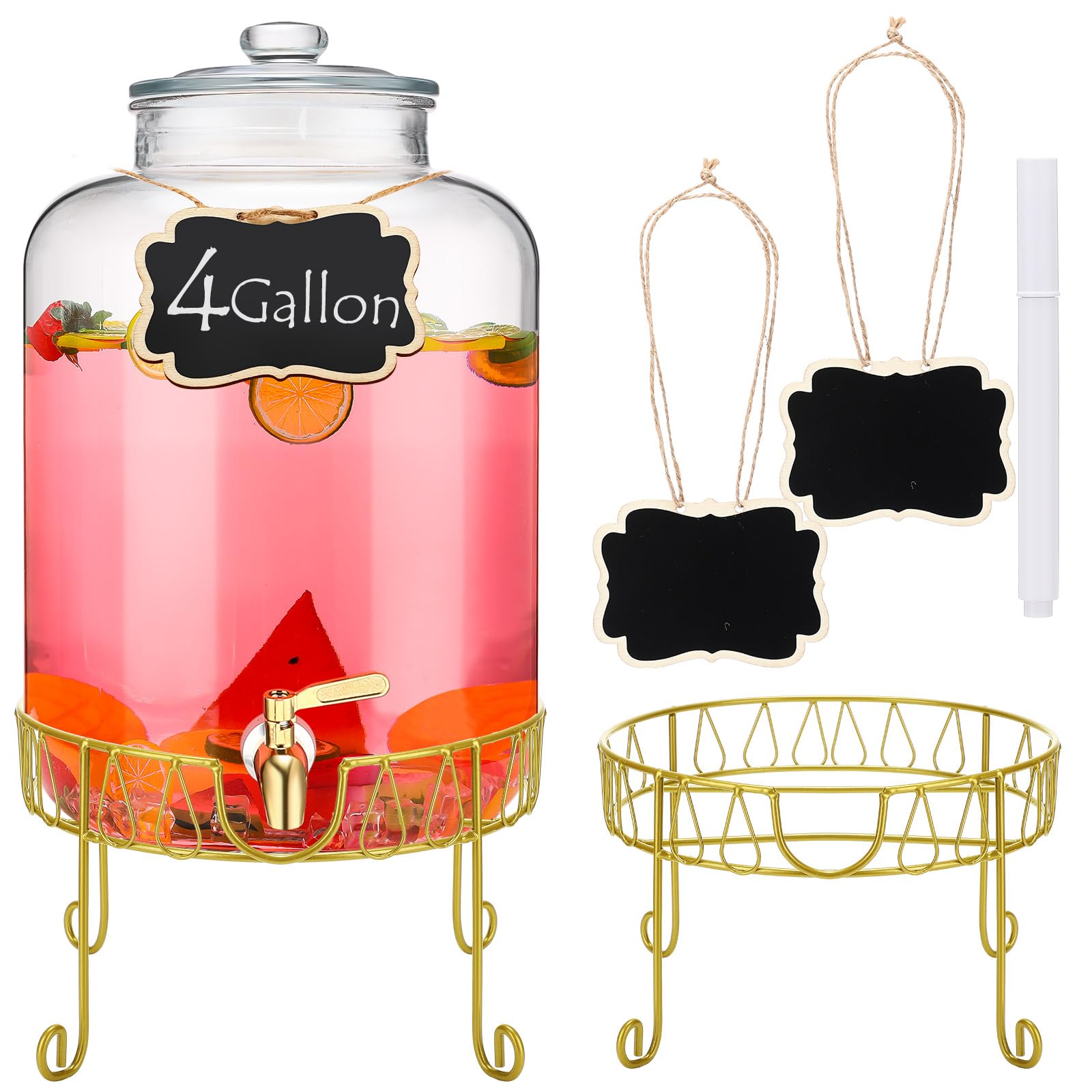 Dispensadores de bebidas para fiestas, dispensador de bebidas de 4 galones con soporte y recipientes de bebidas de espita de acero