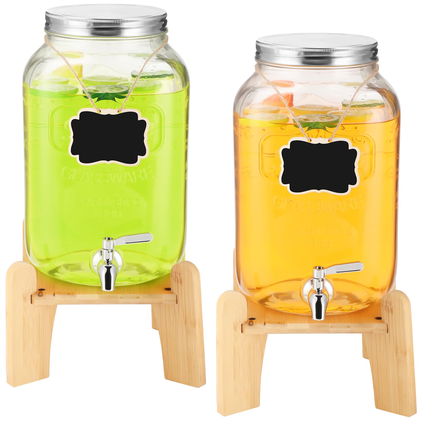Sliner Paquete de 2 dispensadores de bebidas de vidrio de 2 galones con soporte de bambú natural, dispensador de bebidas de vidrio