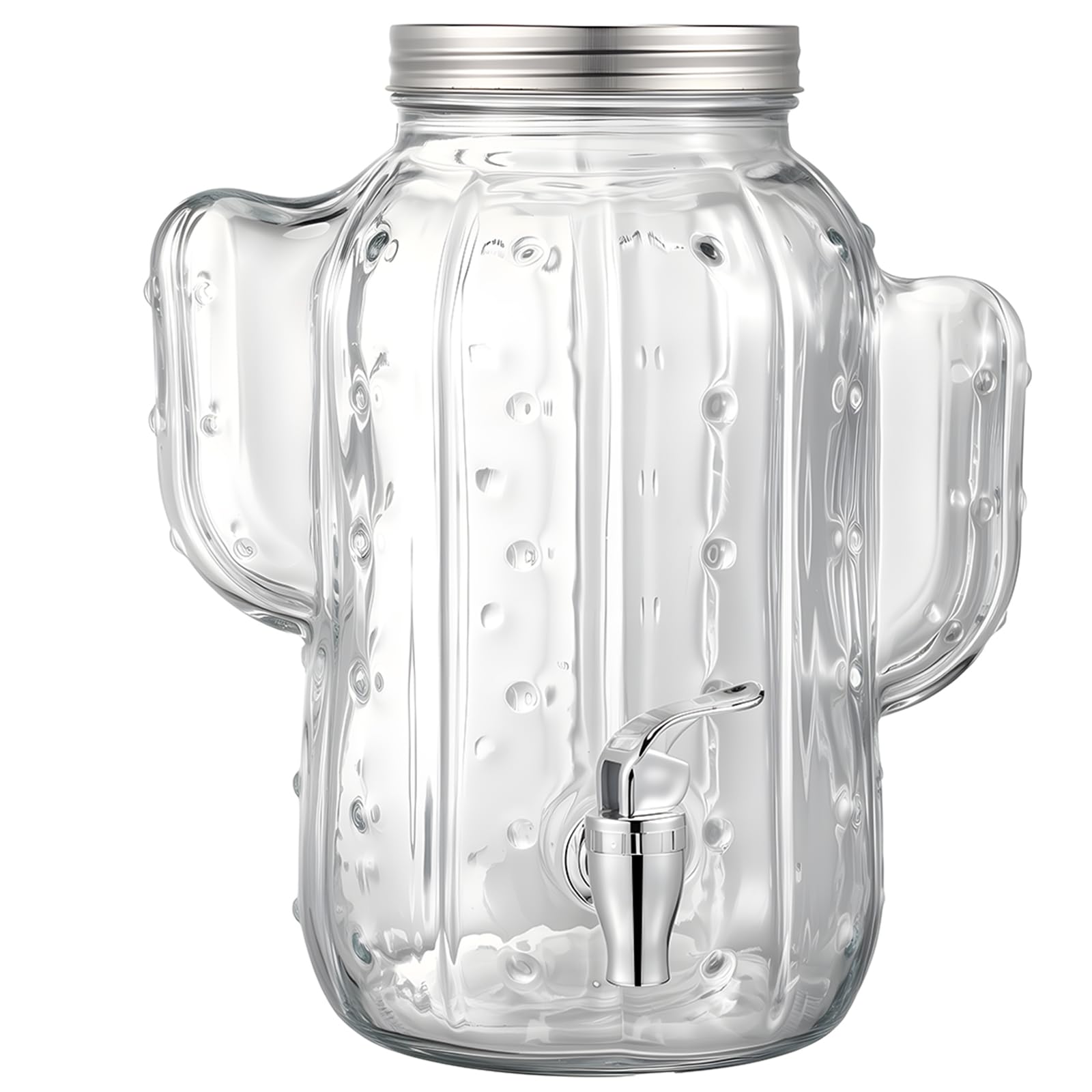 Dispensador de bebidas de cactus de 1 galón con tapa, dispensador de bebidas de vidrio, 1 galón de agua, dispensador de bebidas tr