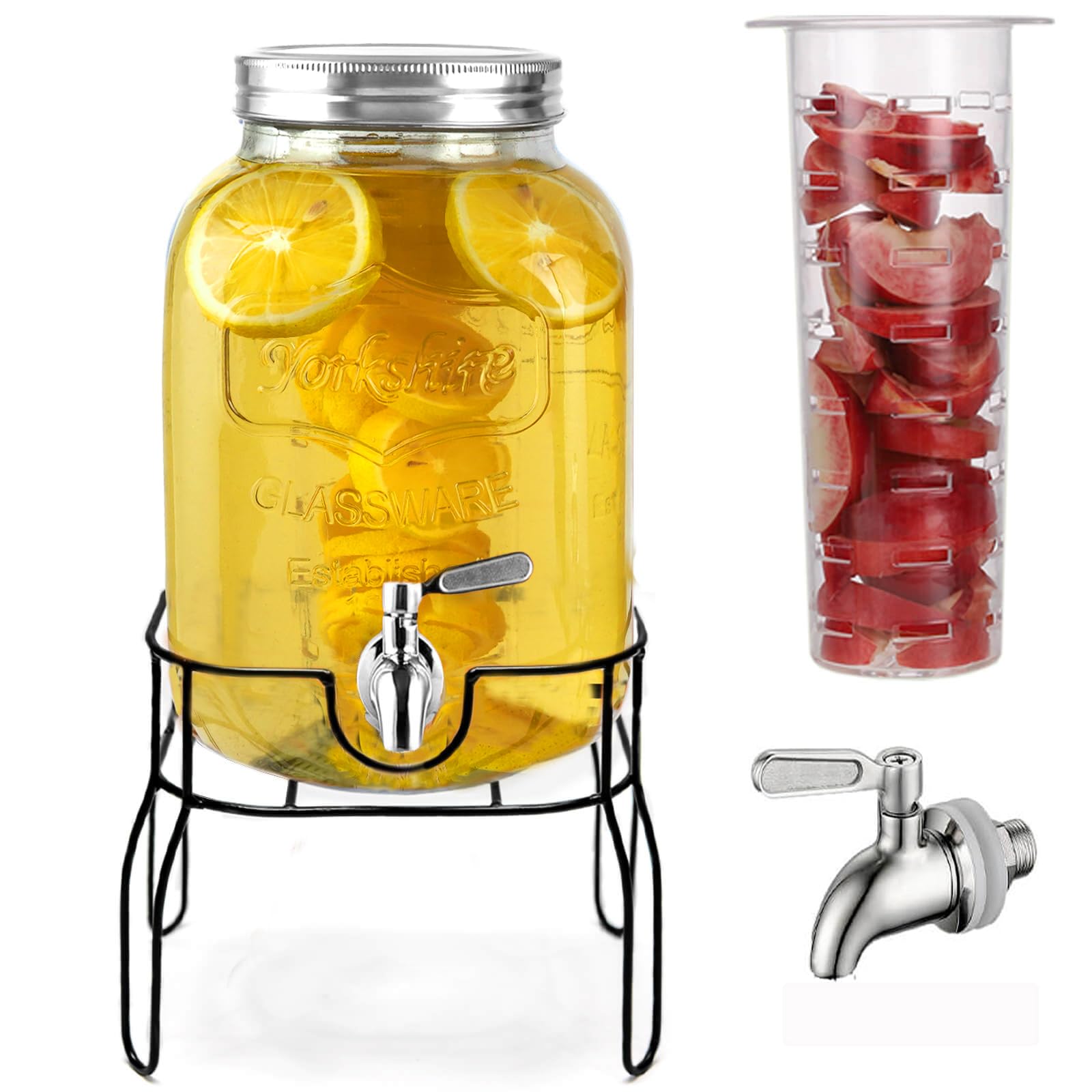 Dispensador de bebidas de vidrio de 2 galones con soporte e infusor de frutas, espita de acero inoxidable – Dispensadores de bebid
