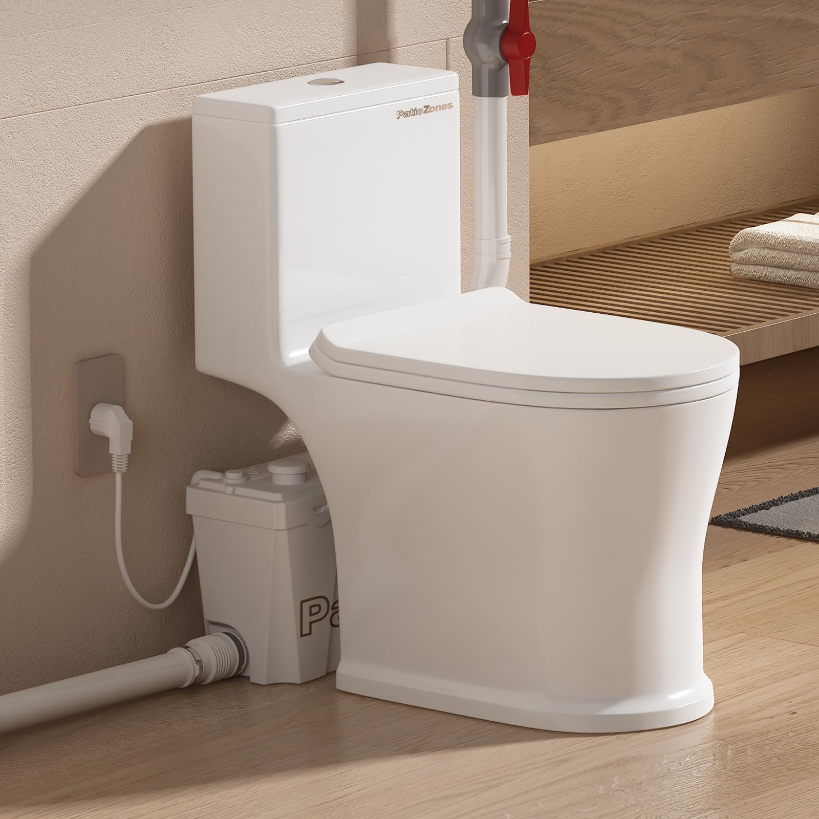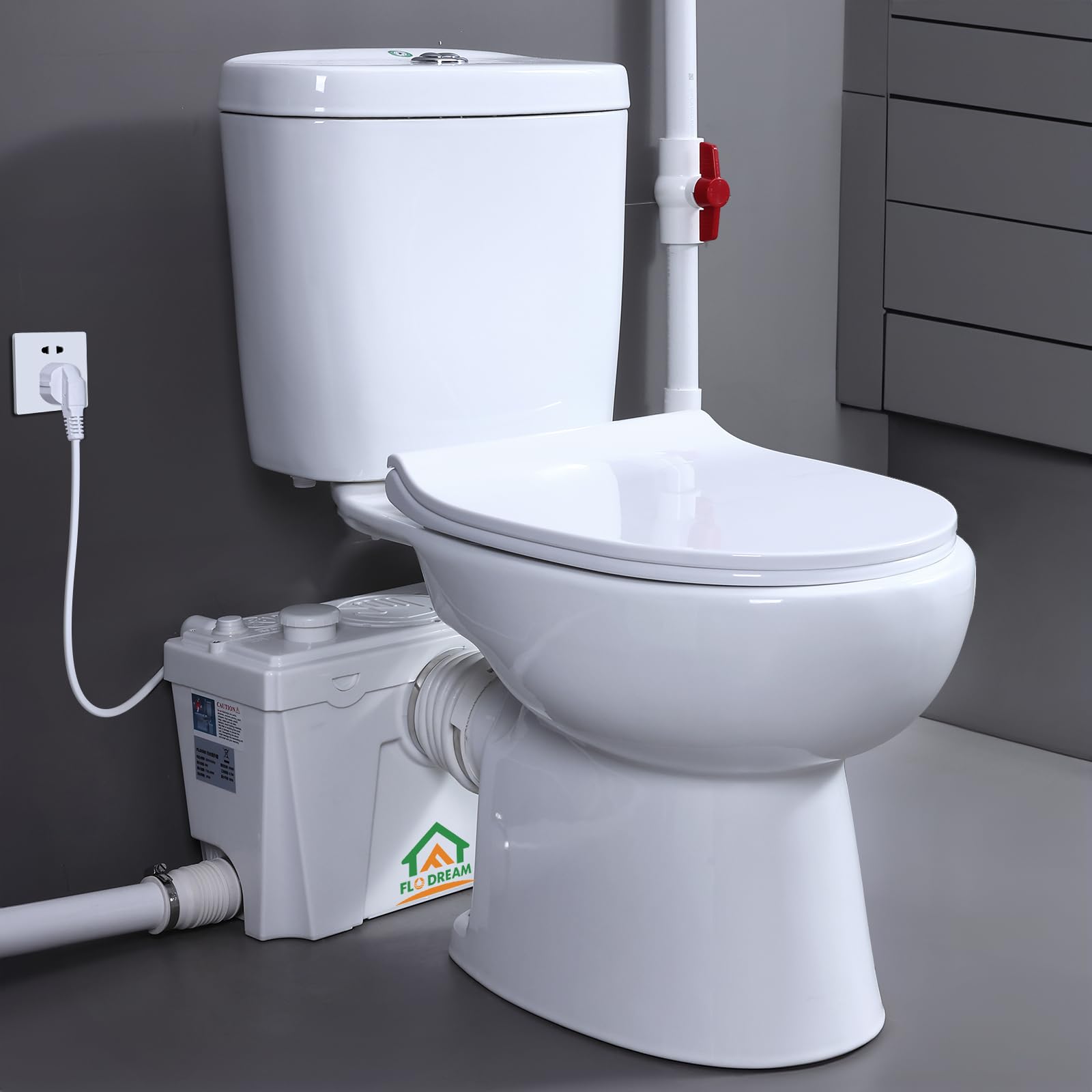 Upflush – Inodoro macerador de 500 vatios, sistema de inodoro ascendente para sótano, cuenco redondo con tubo de extensión, tanque