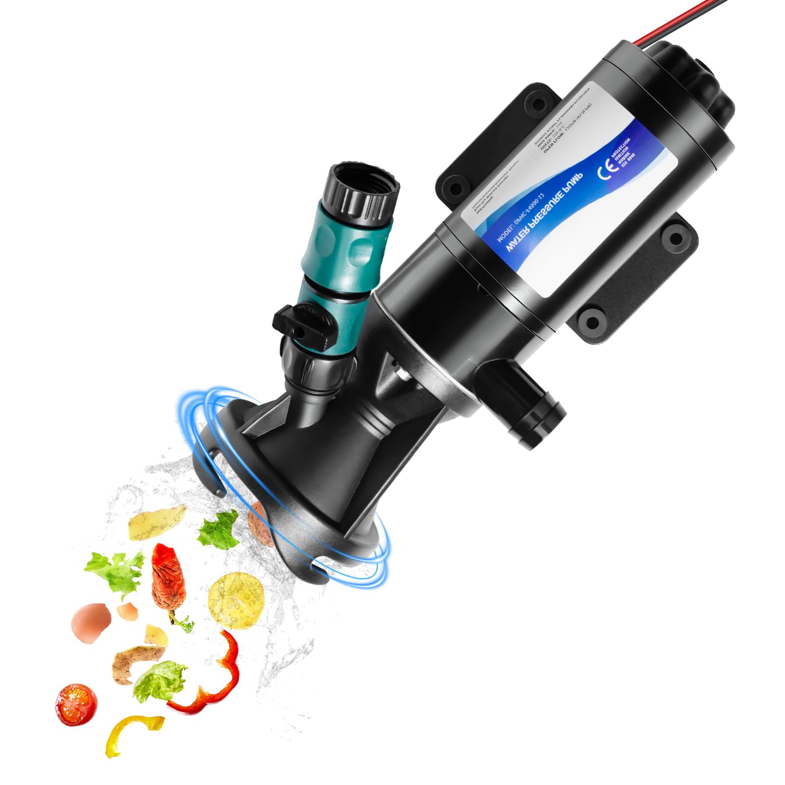Bomba maceradora para bomba de agua RV de 12 V, bomba de picadora de aguas residuales autocebante rápida de 12 GPM con volquete de