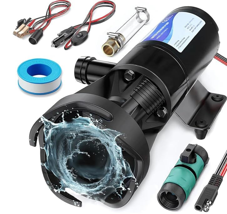 BELZAR Bomba maceradora RV de 12 V, 12 GPM, elevación de 10 pies, succión de 3.2 pies, 43.5 PSI, bomba de agua residual portátil,