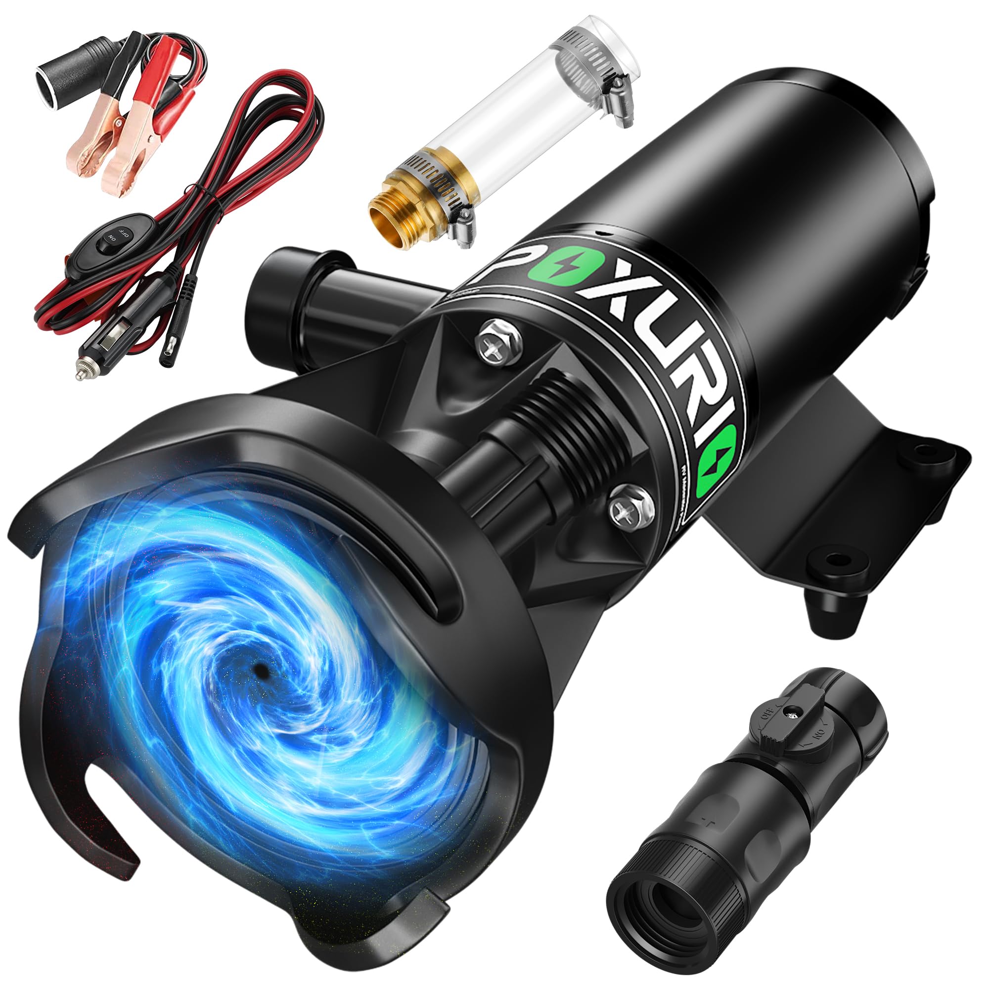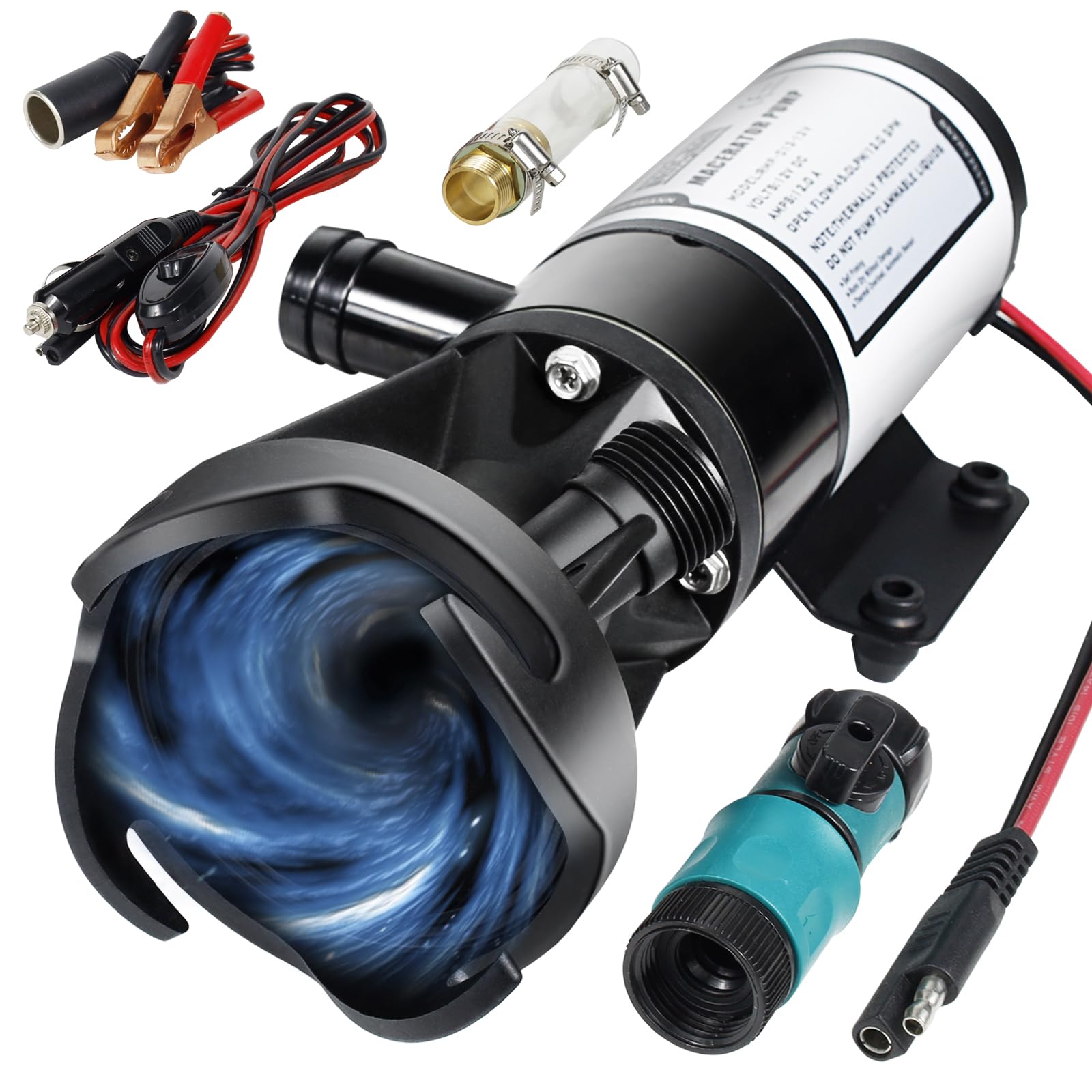 Bomba maceradora de RV, portátil de 12 V 12 GPM de liberación rápida con accesorios de manguera y puerto de descarga de manguera d