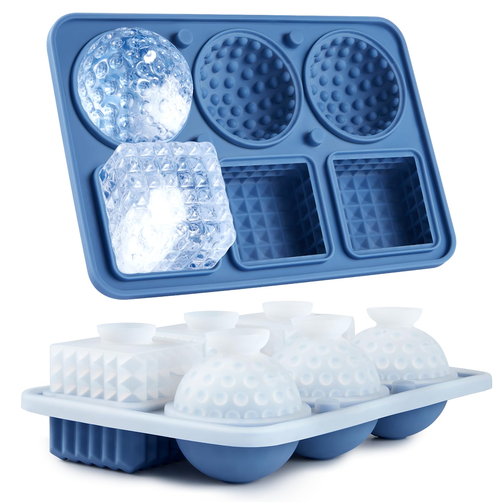 Acomler Bandeja grande de silicona para cubitos de hielo, 3 cubos de cristal grandes y bandeja de hielo de golf de 3 esferas, mold