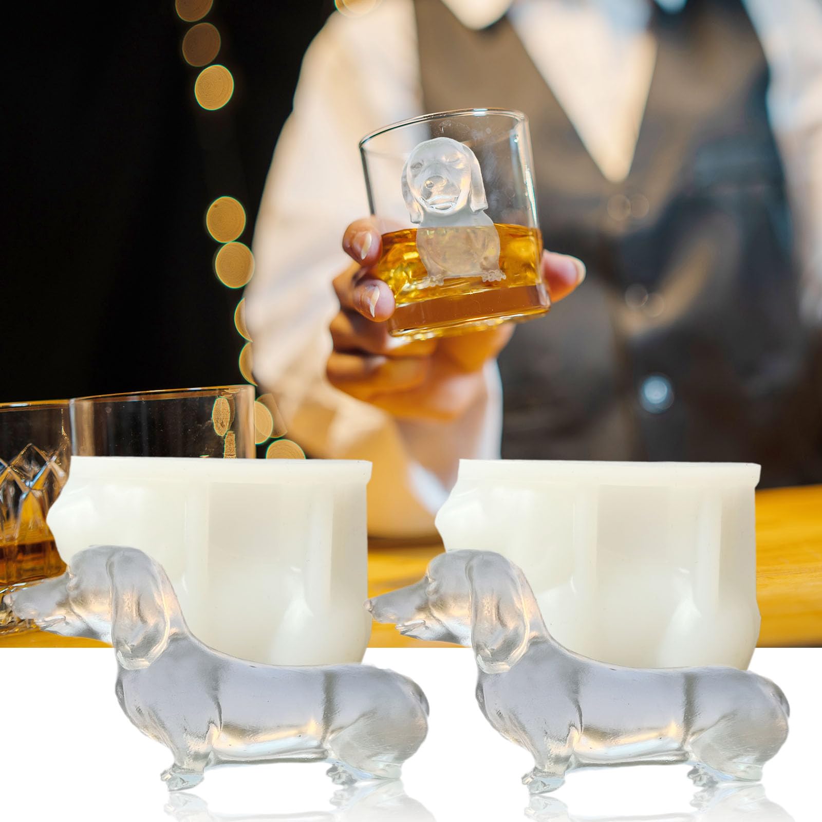 Moldes de silicona 3D para perros salchichas con forma de animal, bandeja grande para cubitos de hielo para whisky, cóctel, bebida