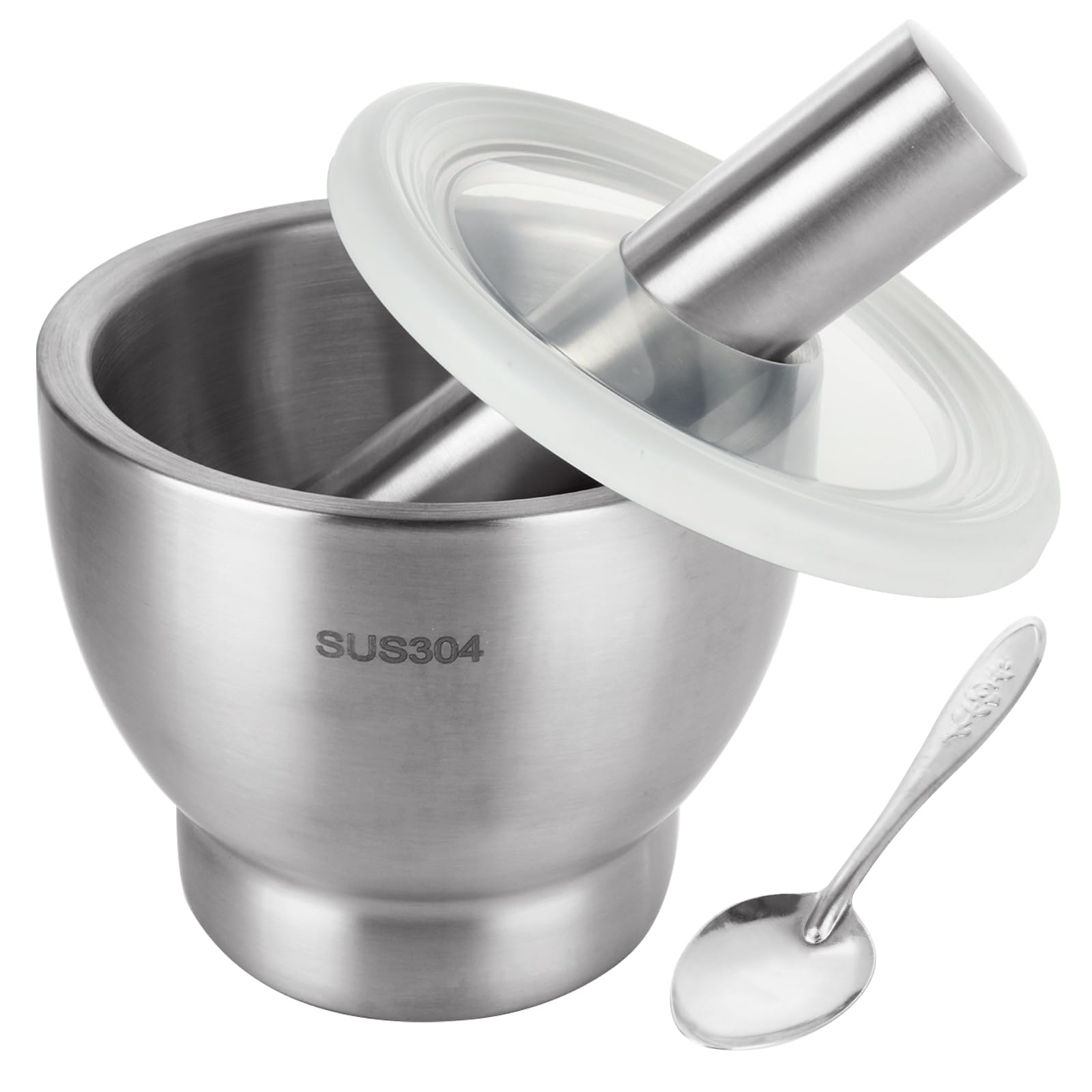 Juego de mortero y mortero de acero inoxidable, amoladora de hierbas para laboratorio de cocina, trituradora de acero 18/8 con seg