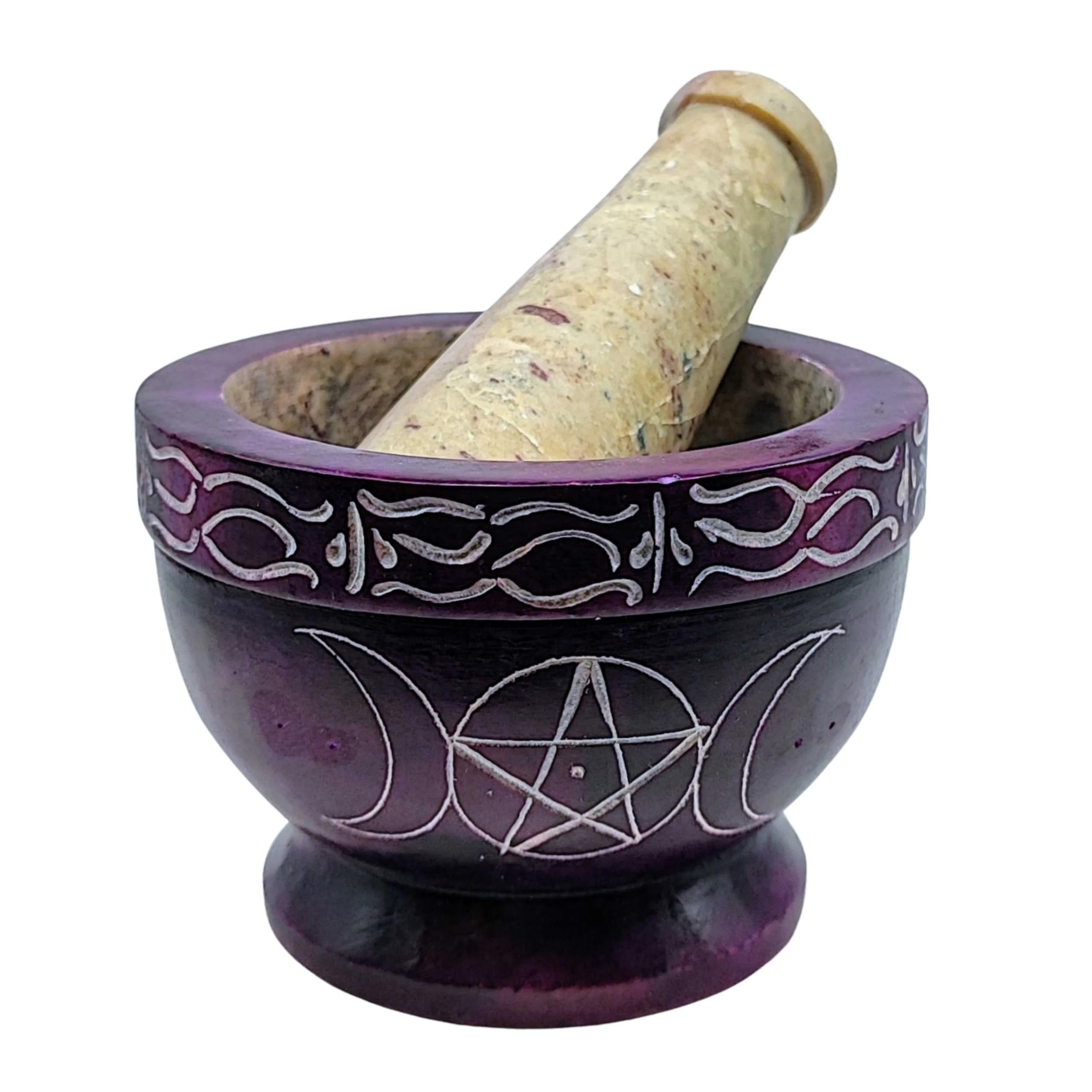 New Age Source Mortero de esteatita y Pestel-Púrpura-Triple Luna Pentáculo