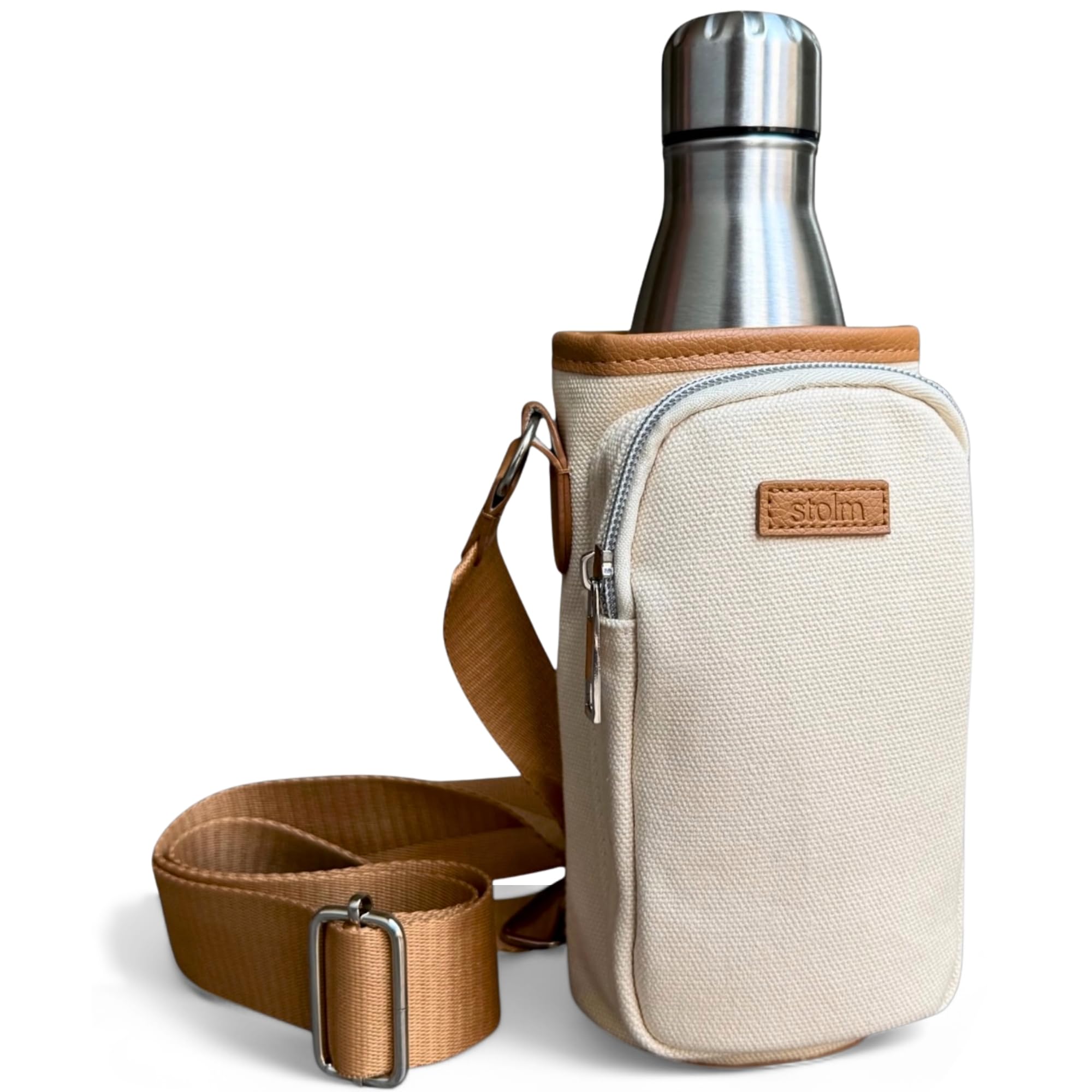Bolsa de algodón de lona con aislamiento para botella de agua, elegante soporte con correa de 32 onzas | Soporte cruzado de hidrat