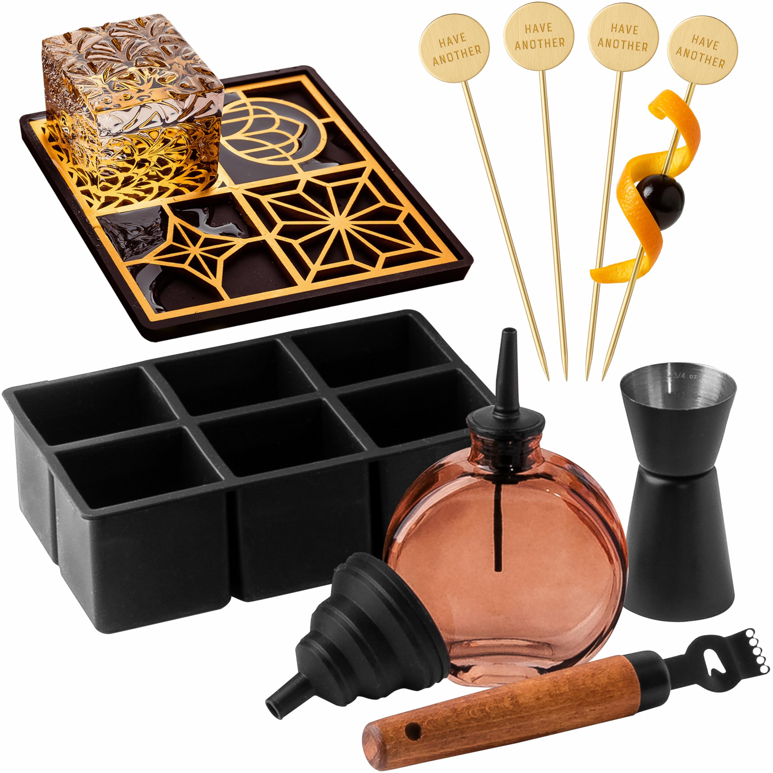 Kit de cóctel de whisky | Accesorios de barra fría que incluyen cubitos de hielo grabados y molde para hacer regalos únicos para p