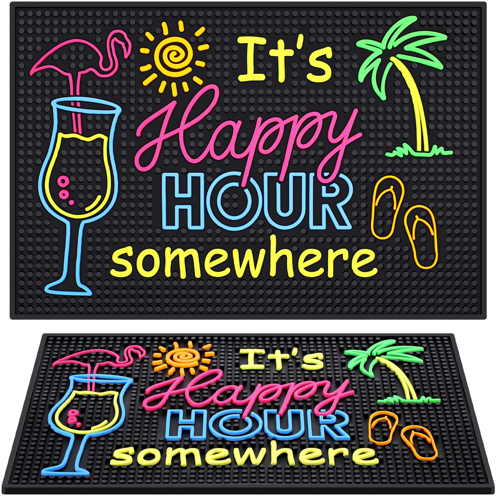 Juego de 2 tapetes de bar (18 x 12 pulgadas) – Alfombrillas de goma antideslizantes para encimera, barman, bar en casa, duradero,