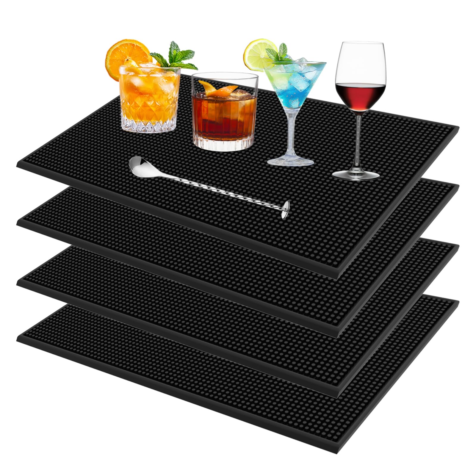 Juego de 2 alfombrillas de goma para barra, 18 x 12 pulgadas, color negro, duraderas, antideslizantes, no tóxicas para derrames y