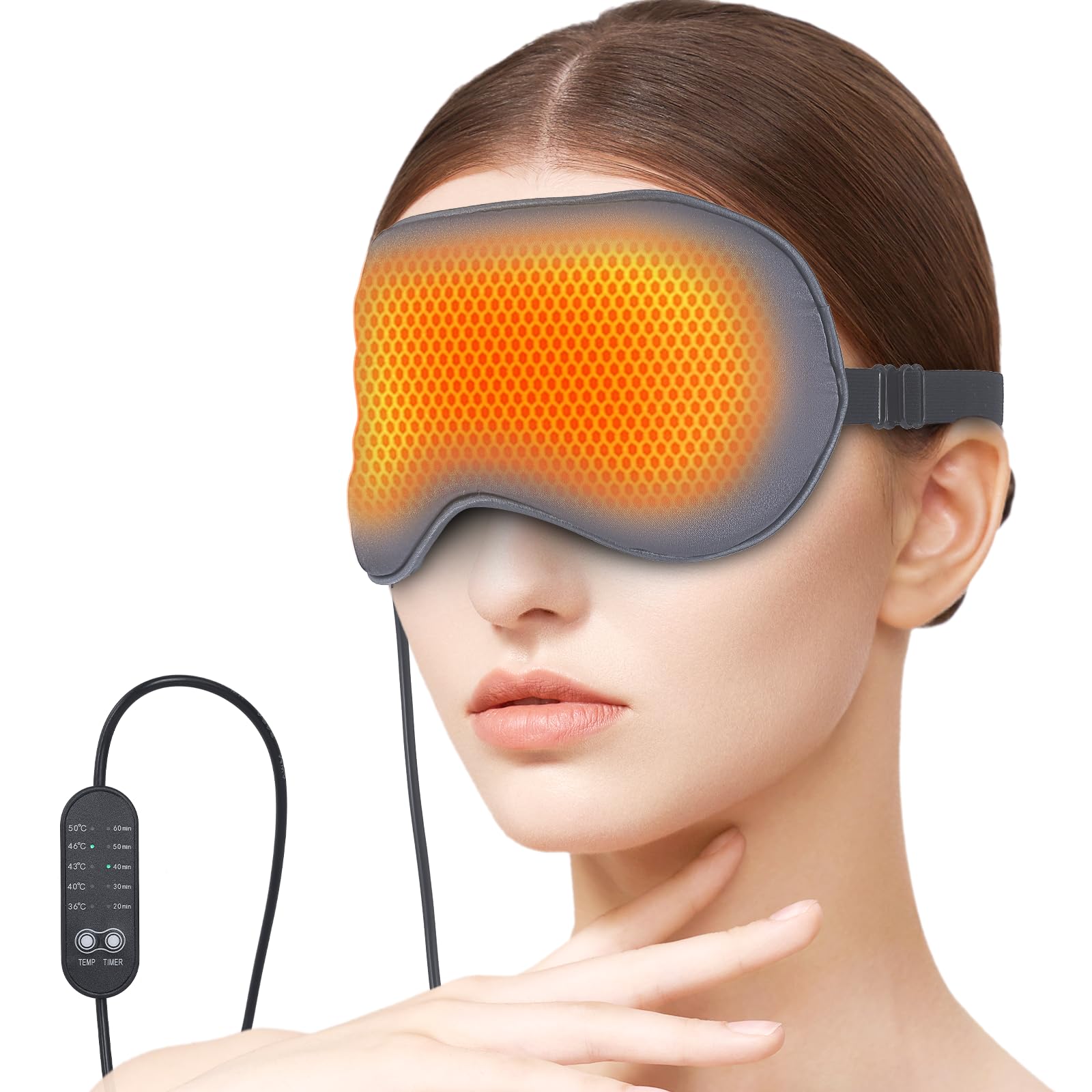 Ezona Máscara térmica para ojos, máscara de compresión ocular cálida para ojos secos, almohadilla térmica eléctrica USB con contro