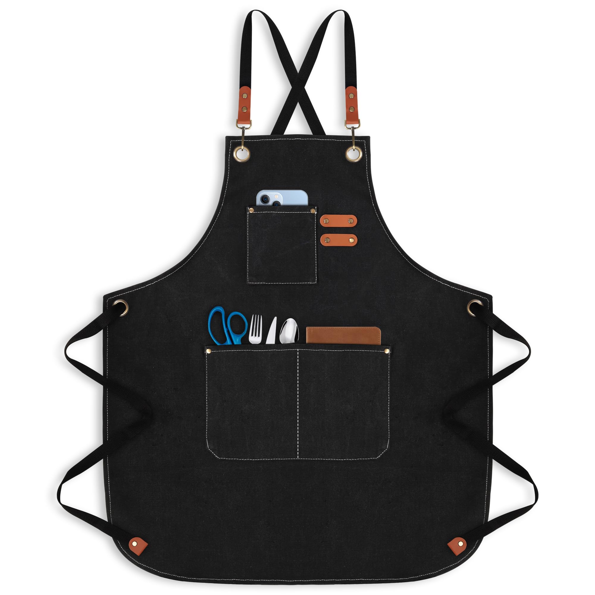 Delantal de lona 100% algodón | Delantal de cocina unisex para hombres y mujeres con 3 bolsillos y correas cruzadas ajustables