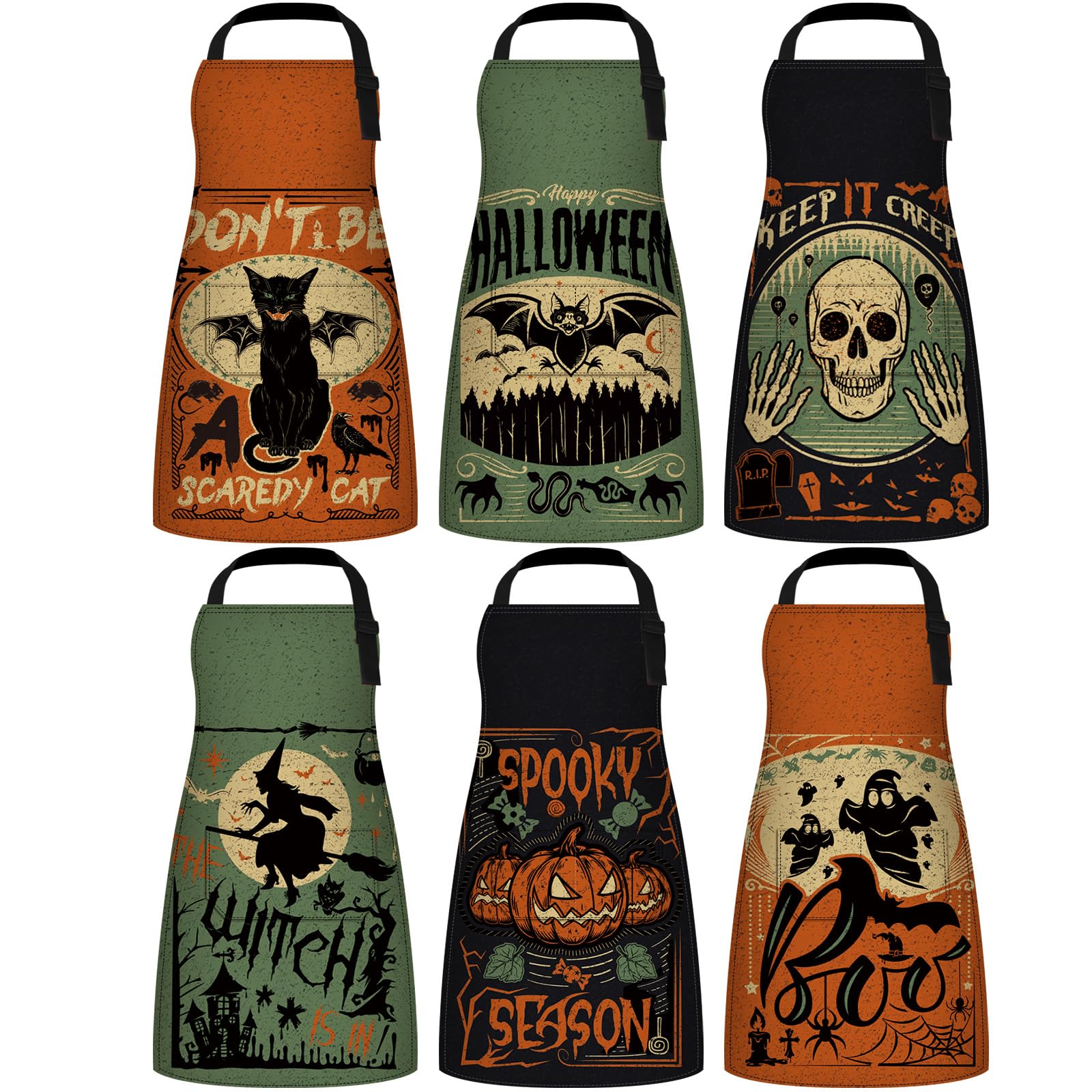 6 Pcs Halloween Aprons with Pockets Halloween Skeleton Skull Goth Bloody Scary Kitchen Aprons for Women Adults Gift