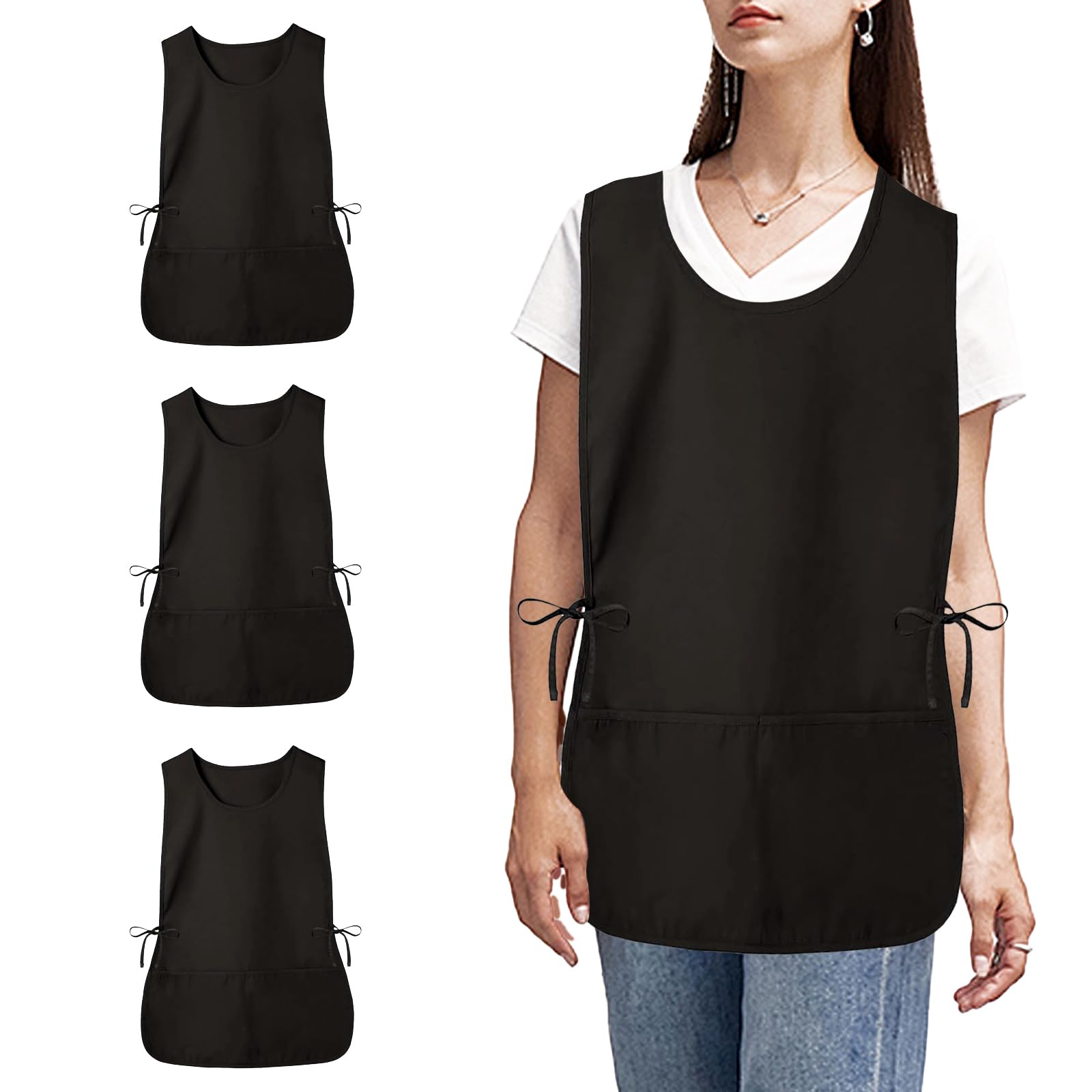 Delantal con lazos laterales y 2 bolsillos profundos, delantal unisex para el trabajo y la cocina