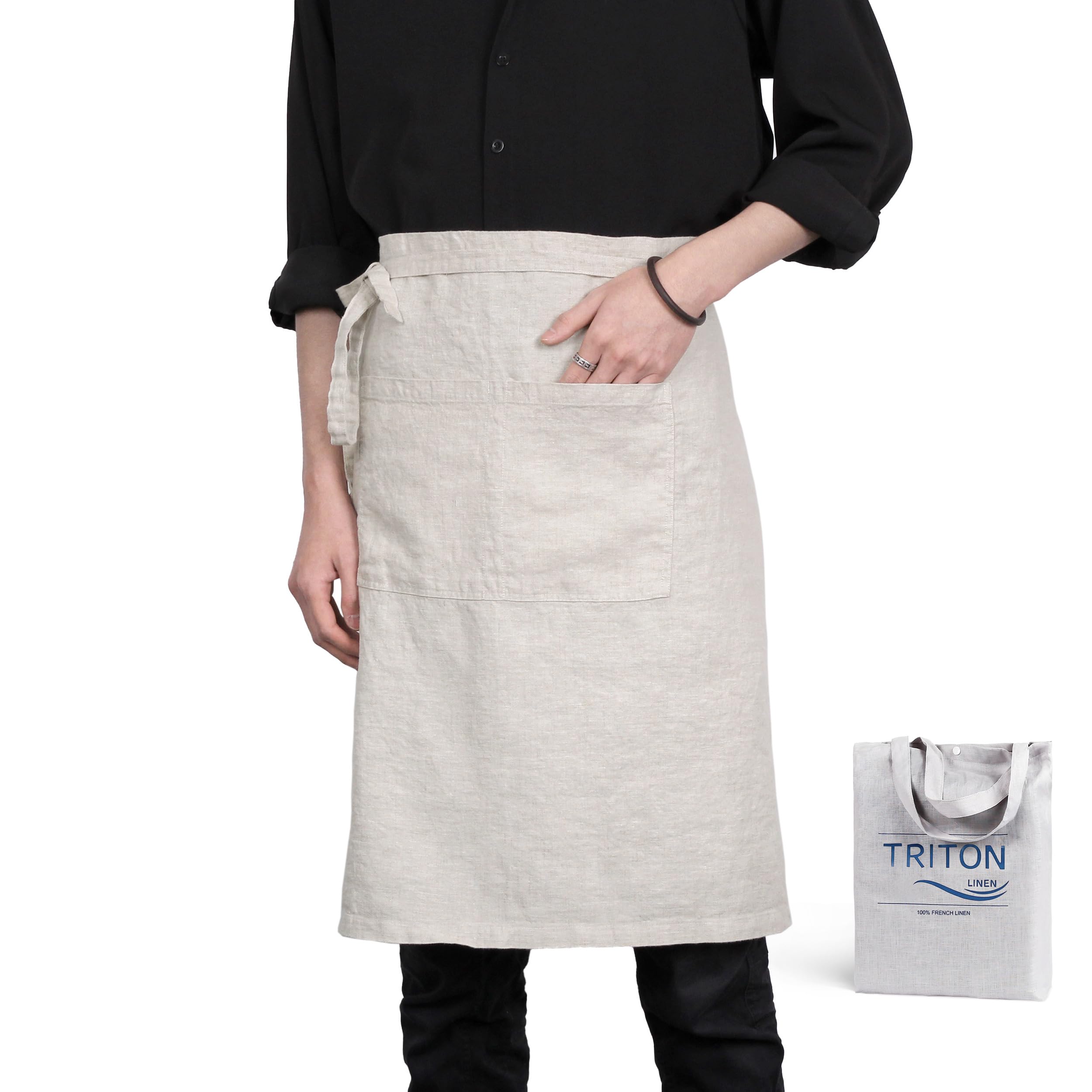 Pure Linen Bistro – Medio delantal – Delantales unisex de cintura de 25 x 35 pulgadas con bolsillo grande, ideal para manualidades
