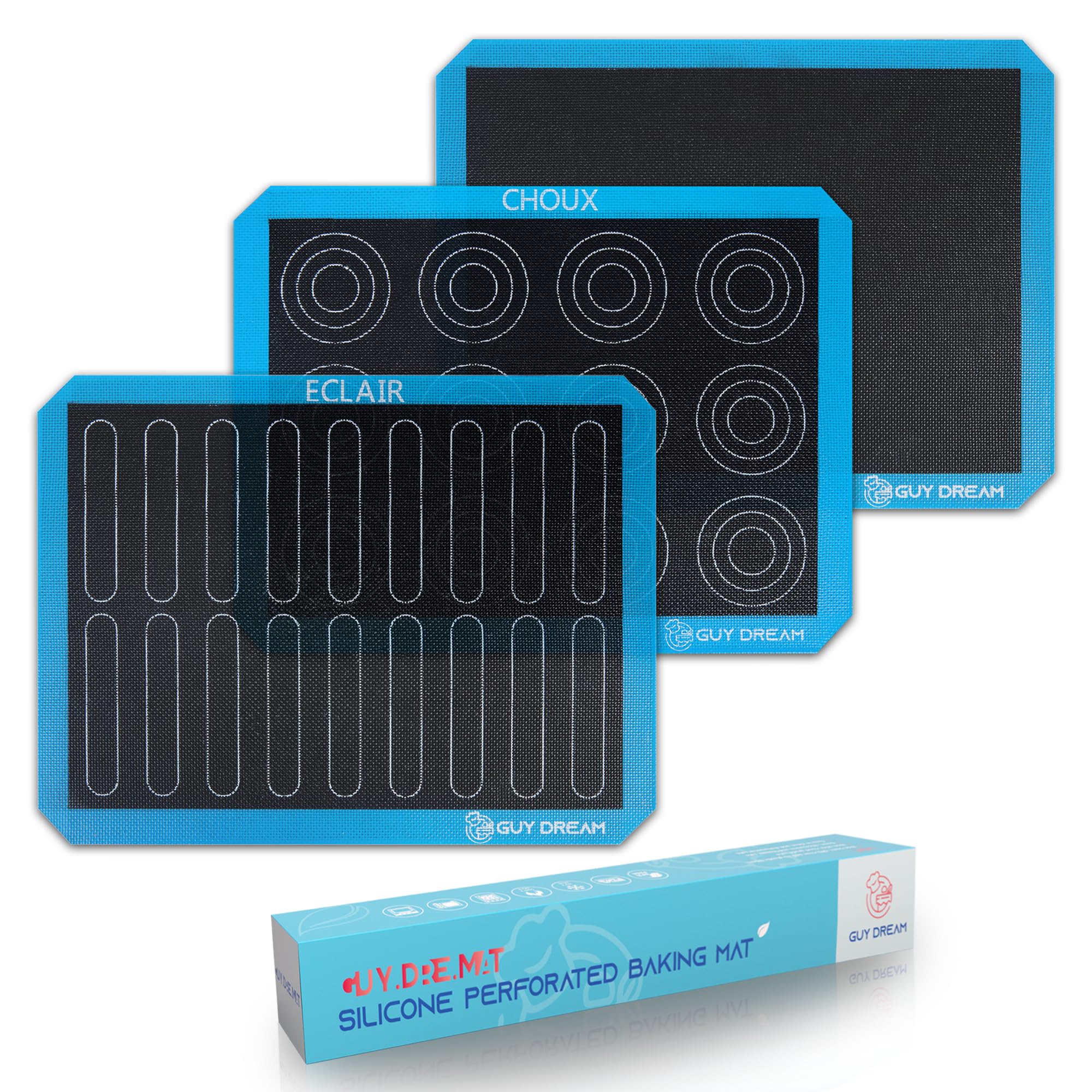 GUY DREAM – Alfombrilla perforada de silicona para hornear de 3 piezas, 11-4/5 x 15-3/4 pulgadas, 1 alfombrilla Choux, 1 alfombril