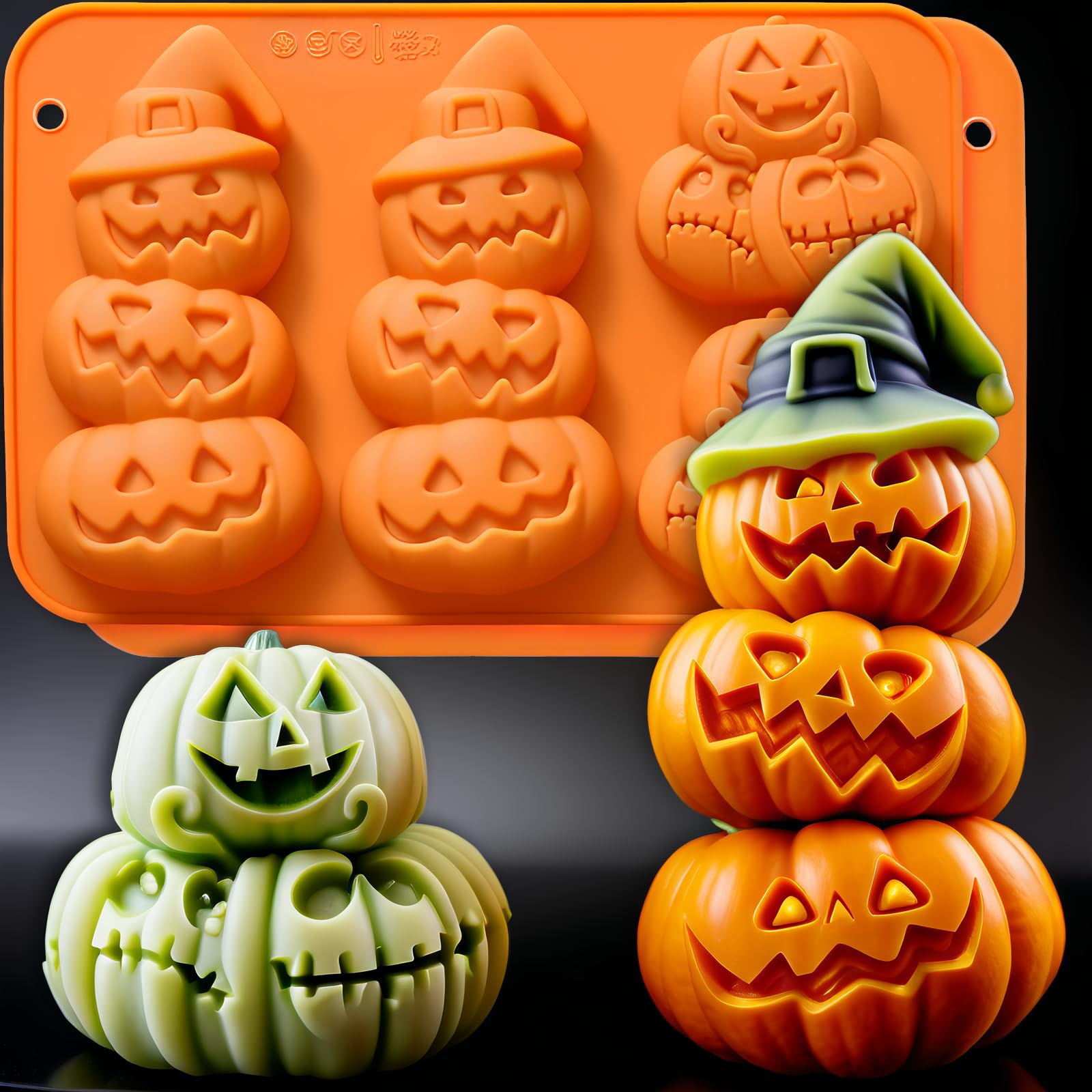 2 moldes de silicona de calabaza 3D para tartas de calabaza, moldes temáticos de Halloween, calabazas para hornear, cupcakes, mold
