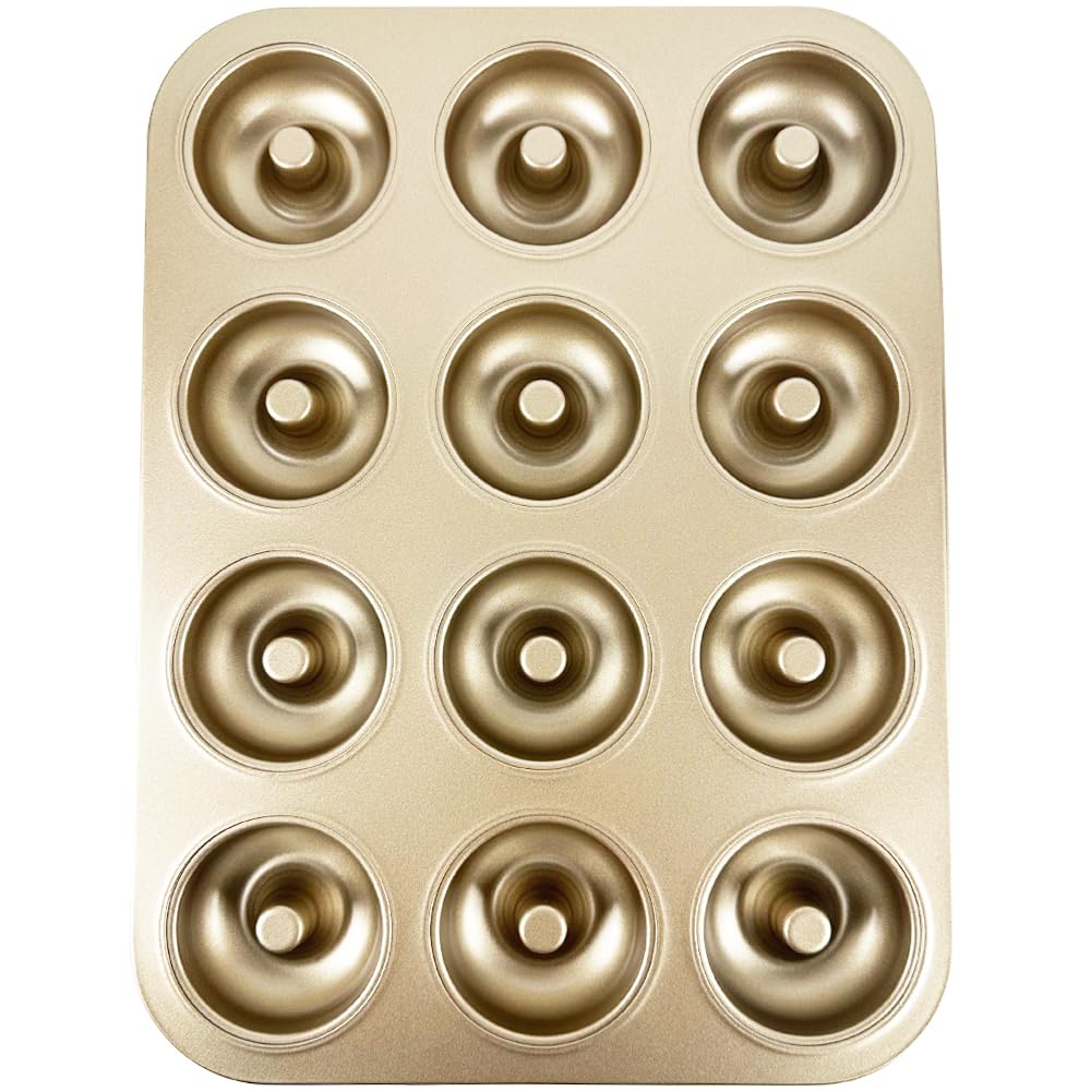 Moldes para hornear donas antiadherentes de 12 cavidades, anillo de acero al carbono, moldes para donas