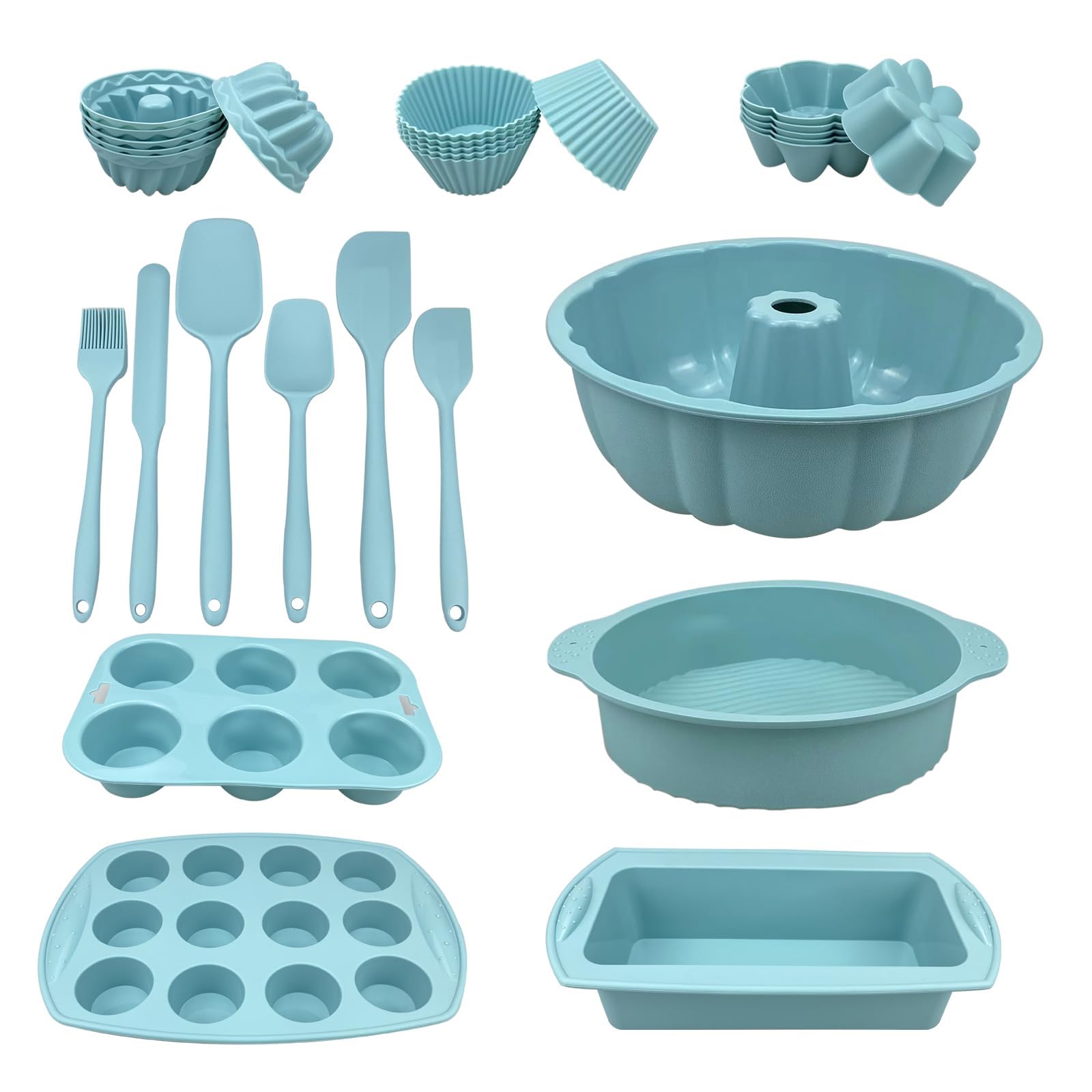 Juego de 29 piezas de silicona antiadherente para hornear con mini moldes para hornear, utensilios para hornear para horno, moldes