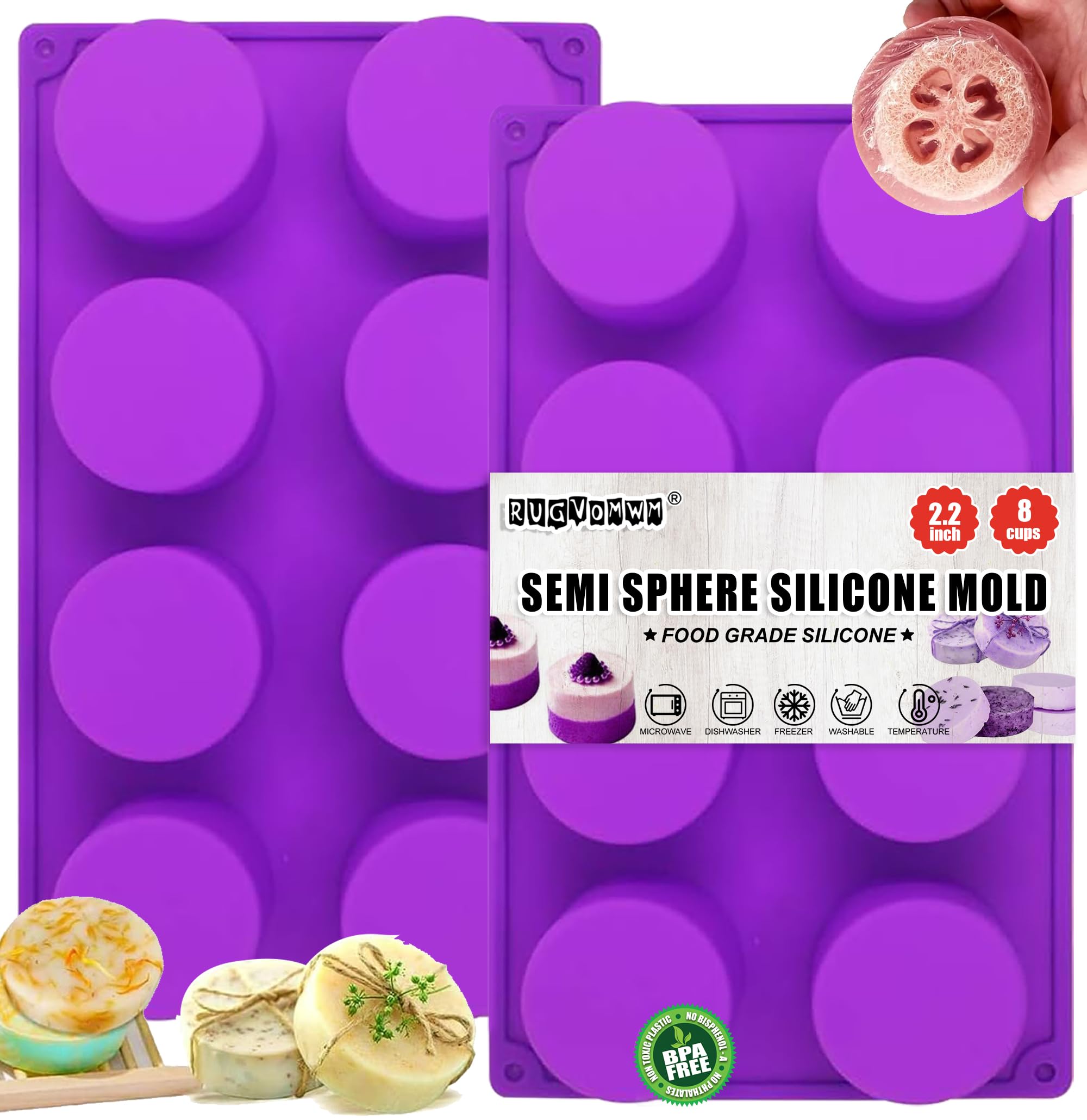 Molde de silicona redondo de 8 cavidades para jabón, pasteles, pan, cupcakes, pastel de queso, pan de maíz, muffin, brownie y más