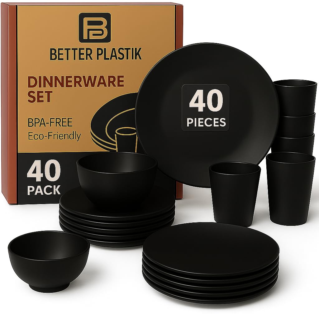 Juego de vajilla de plástico irrompible de 40 piezas, servicio para 8 personas, moderno juego de platos reutilizables para el hoga