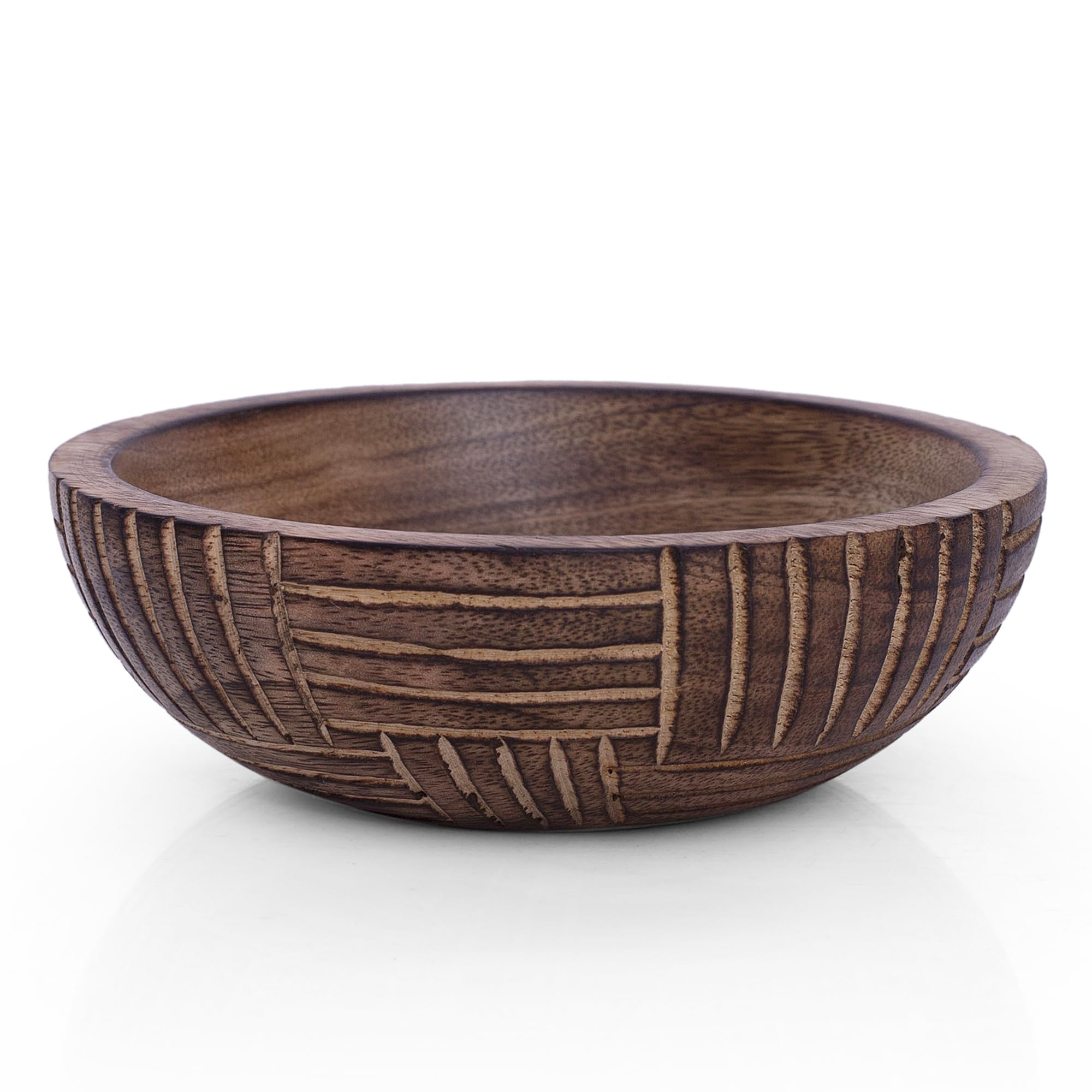 Hermoso cuenco decorativo hecho a mano de madera de mango de 6 x 2 pulgadas para servir aperitivos para frutas secas, papas fritas