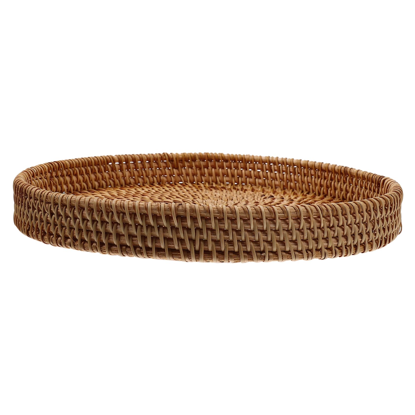 Bandeja redonda de ratán, cesta tejida a mano con asas recortadas, bandeja de mimbre rústico para servir frutas/pan para cocina, m