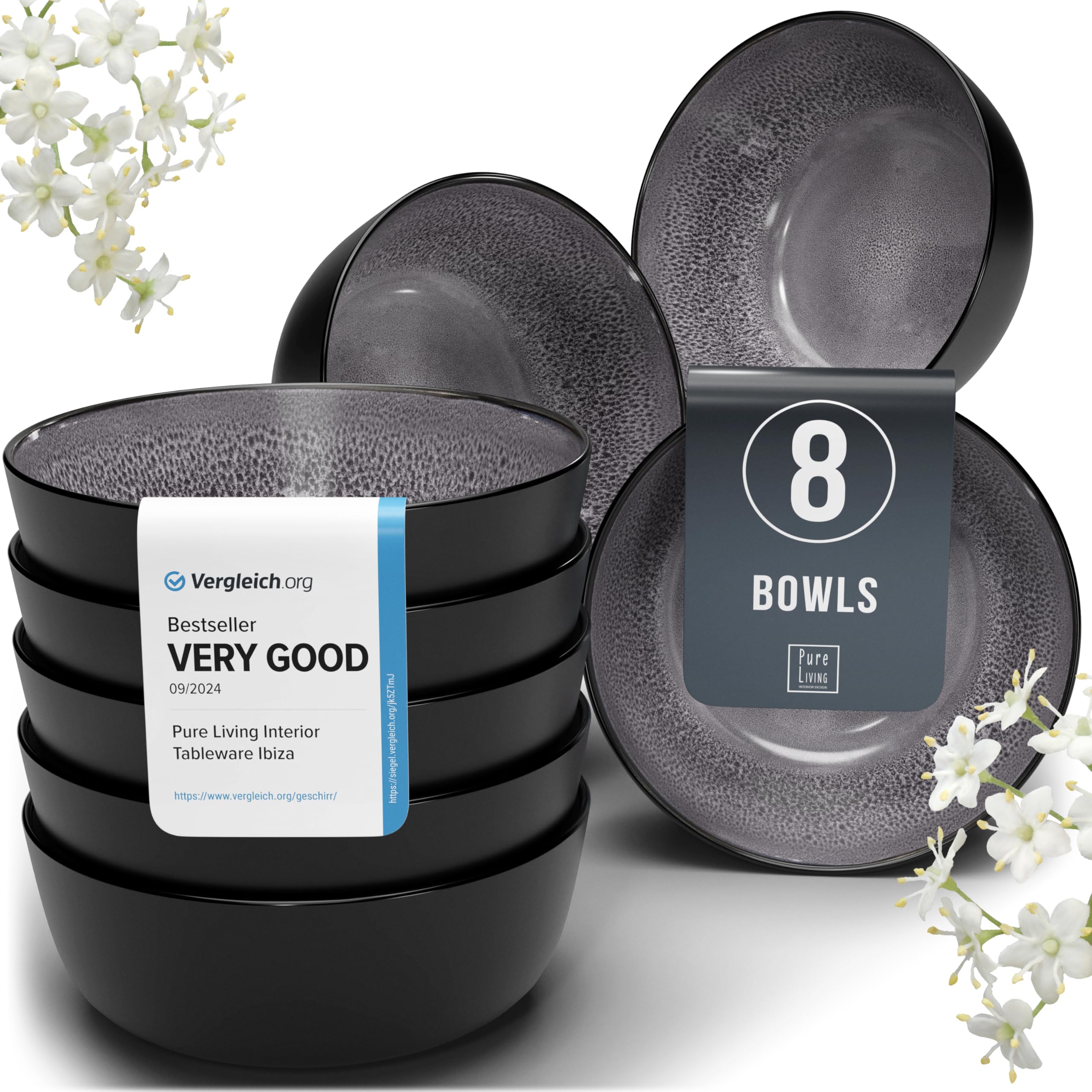 Juego de 8 cuencos de cerámica para cereales de gres – Juego de cuencos de cereales Mediterran, lavavajillas, microondas, resisten