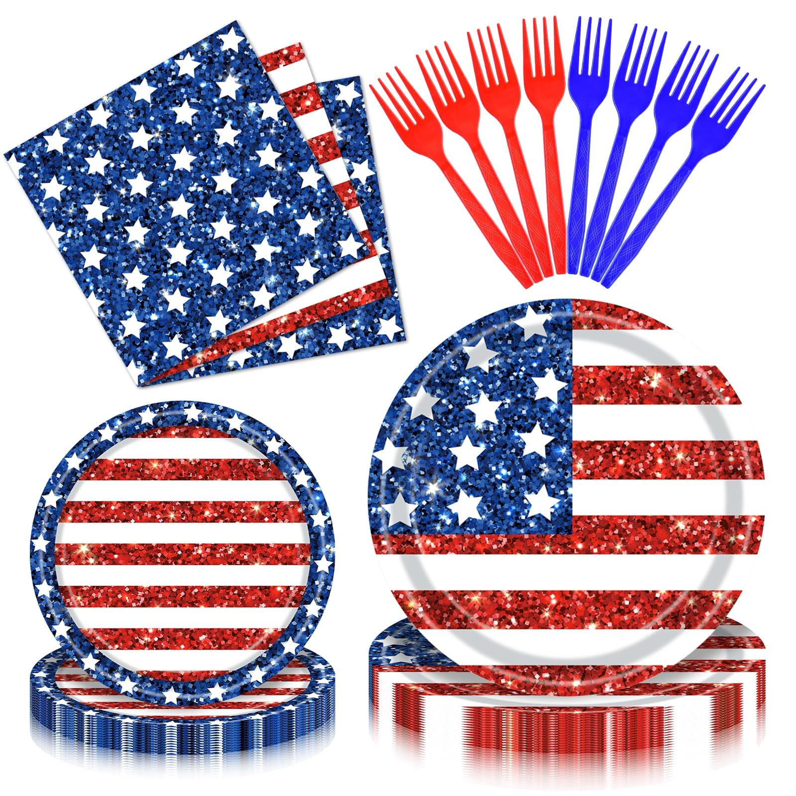 Juego de vajilla patriótica de 100 piezas del 4 de julio, vajilla desechable con bandera estadounidense con platos de papel con pu