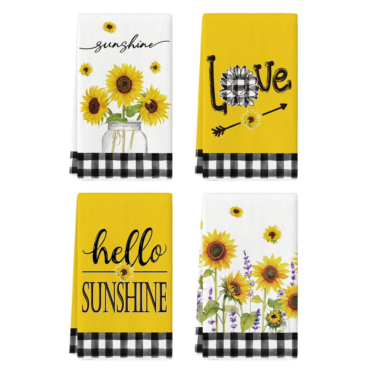 Artoid Mode Juego de 4 toallas de cocina de verano con diseño de girasoles amarillos con texto en inglés «Hello Sunshine Sunflower