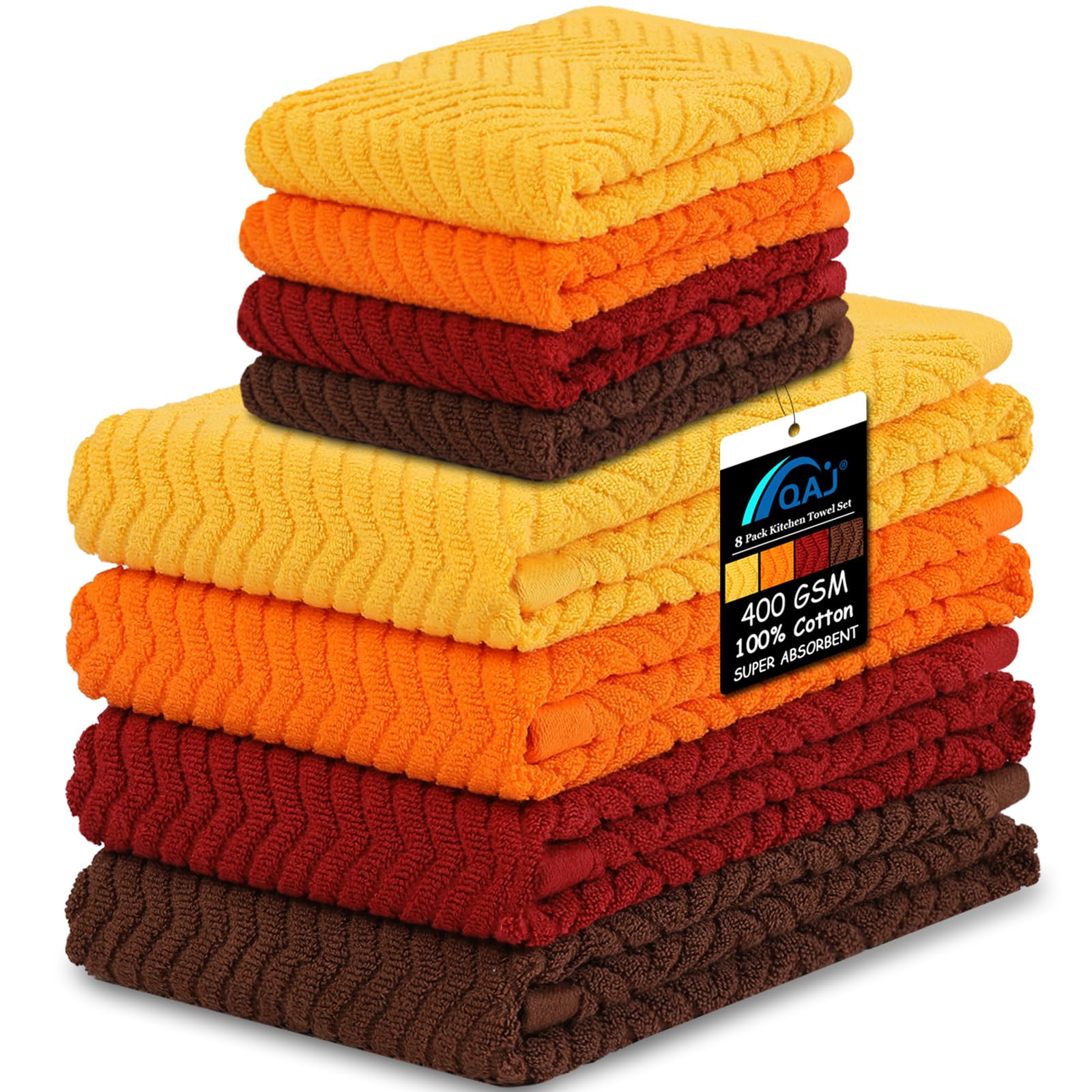 Juego de 8 toallas de cocina y paños de cocina 100% algodón, superabsorbentes de 16 x 25 pulgadas y 13 x 13 pulgadas (400 GSM)