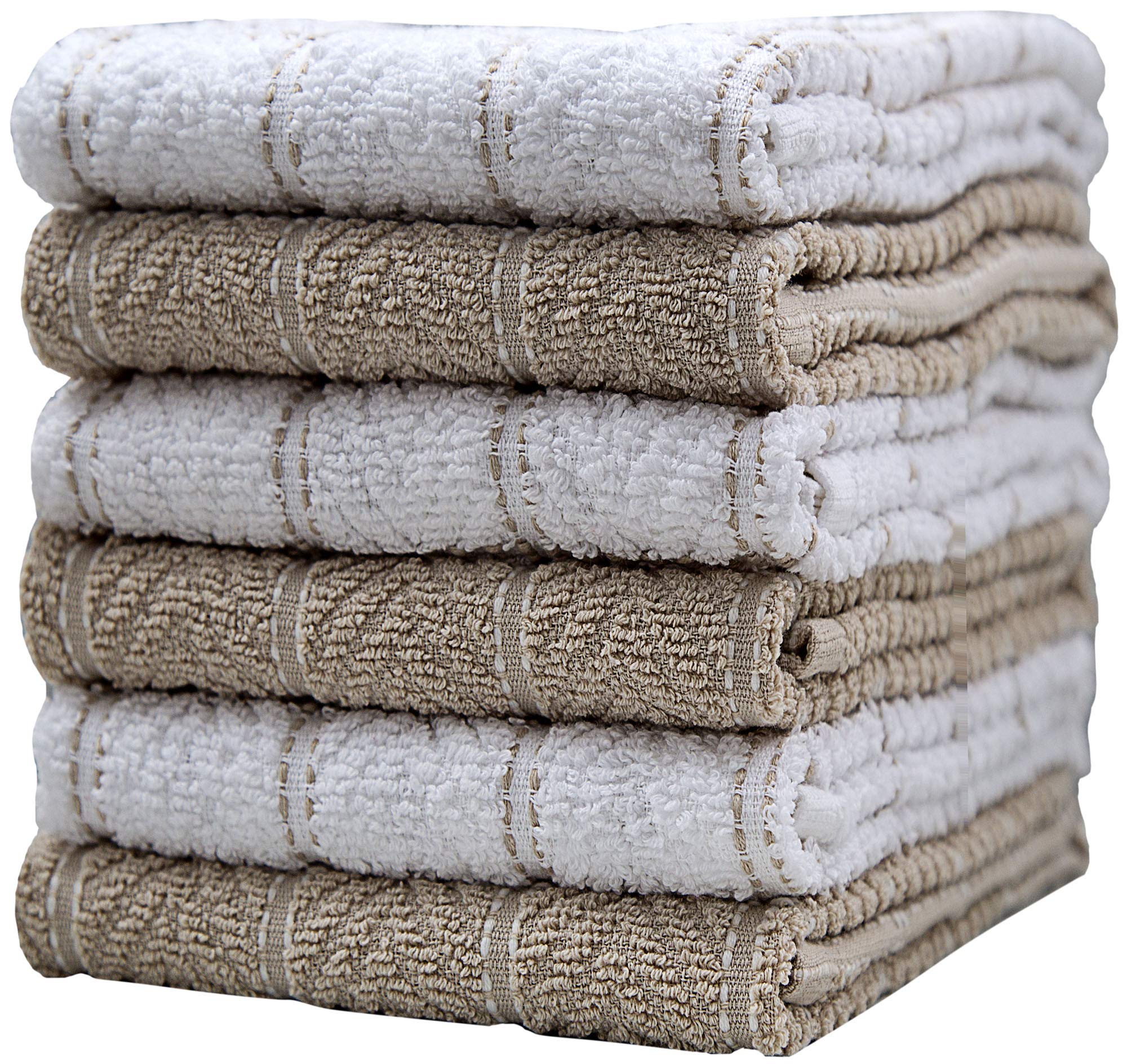 CRAFTSWORTH Toallas de cocina, 15 x 26 pulgadas, paquete de 6, 400 GSM, 100% algodón hilado en anillo, color marrón sólido, súper