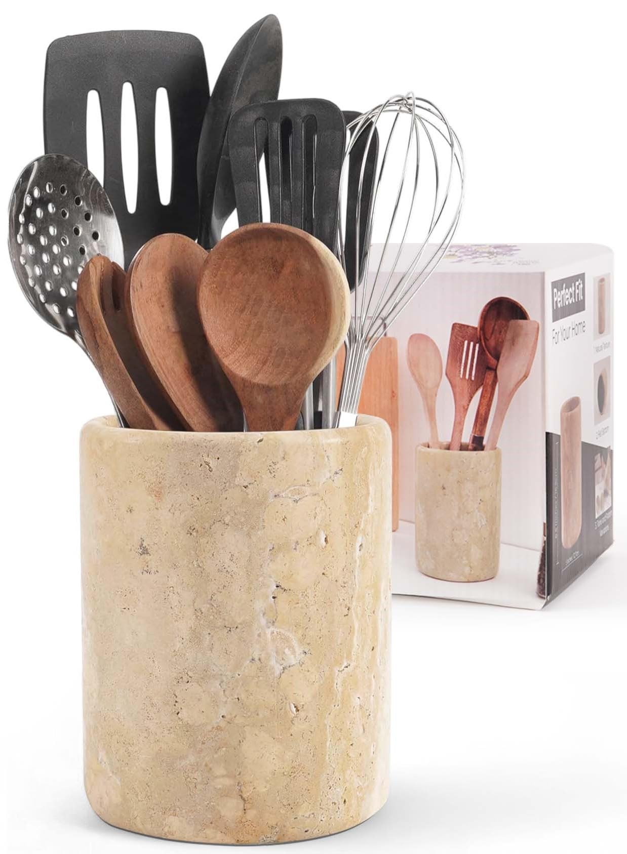 Soporte para utensilios de cocina de mármol de 6.5 pulgadas para almacenamiento de encimera, organizador de utensilios de traverti