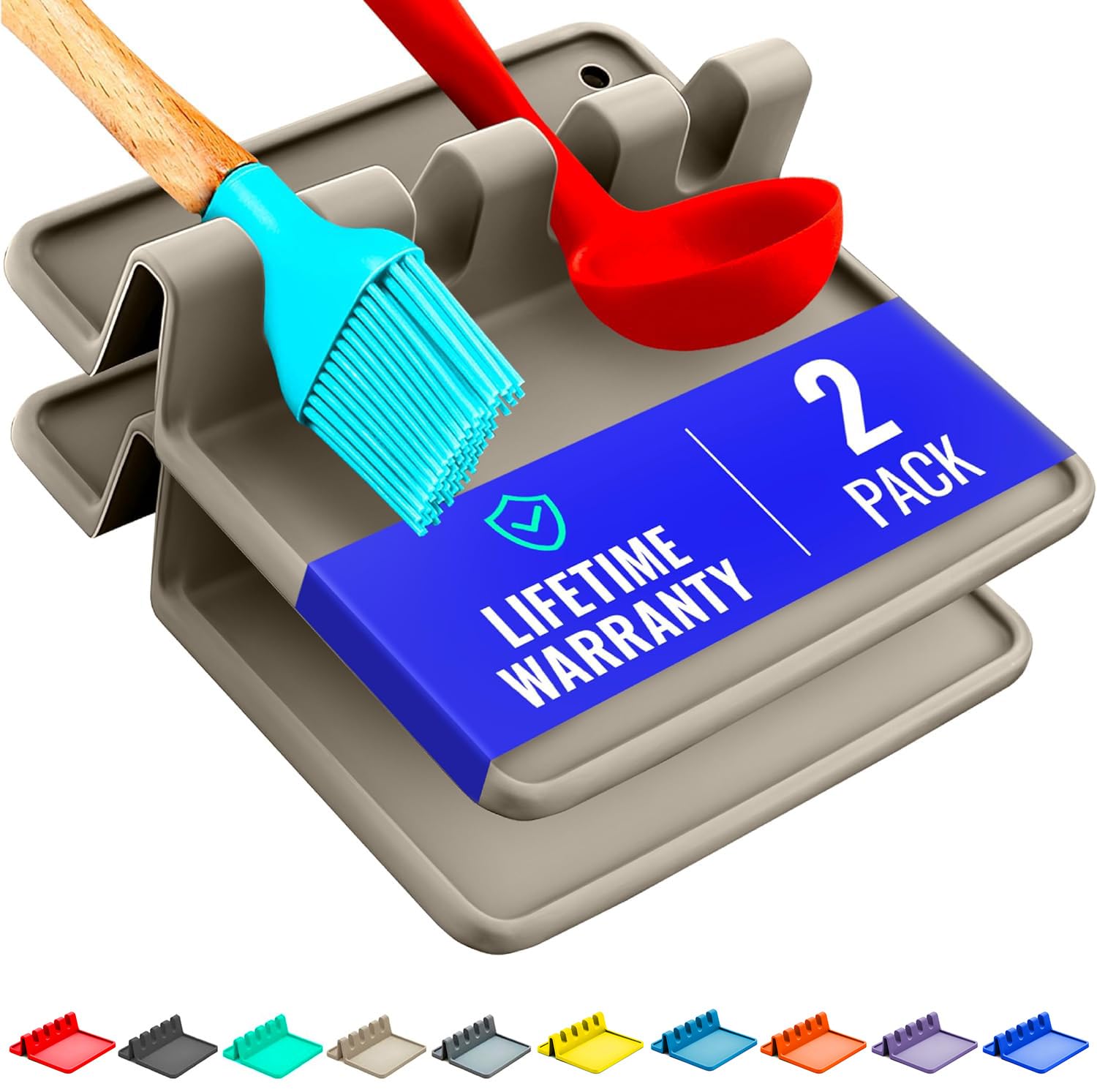 Soporte para cucharas de silicona color crema para estufa con almohadilla de goteo (paquete de dos unidades), resistente al calor,