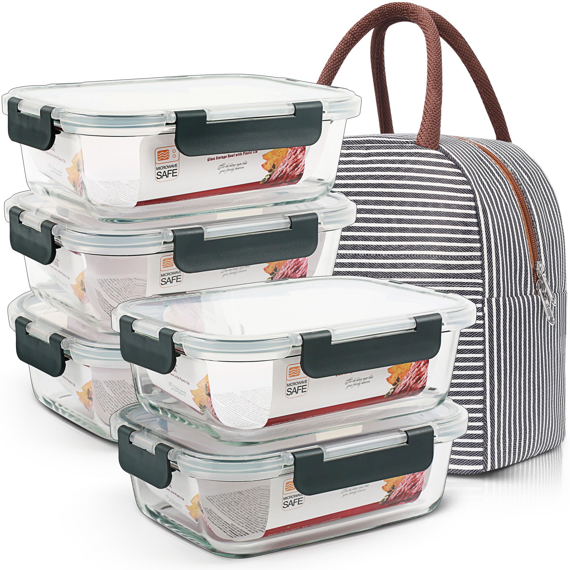 Paquete de 5 recipientes de cristal con tapas apilables de 30 onzas para alimentos con tapa de vidrio apilable, lonchera hermética