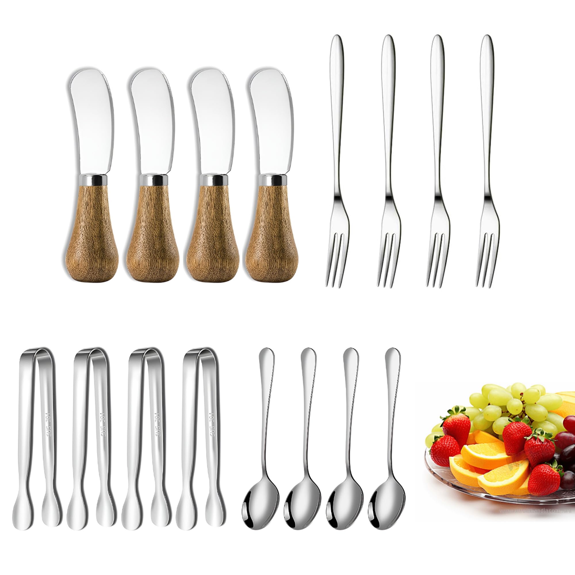 Zazolyne Juego de 16 cuchillos esparcidores de mantequilla de queso, tableros de charcutería, utensilios, mini cucharas y tenedore