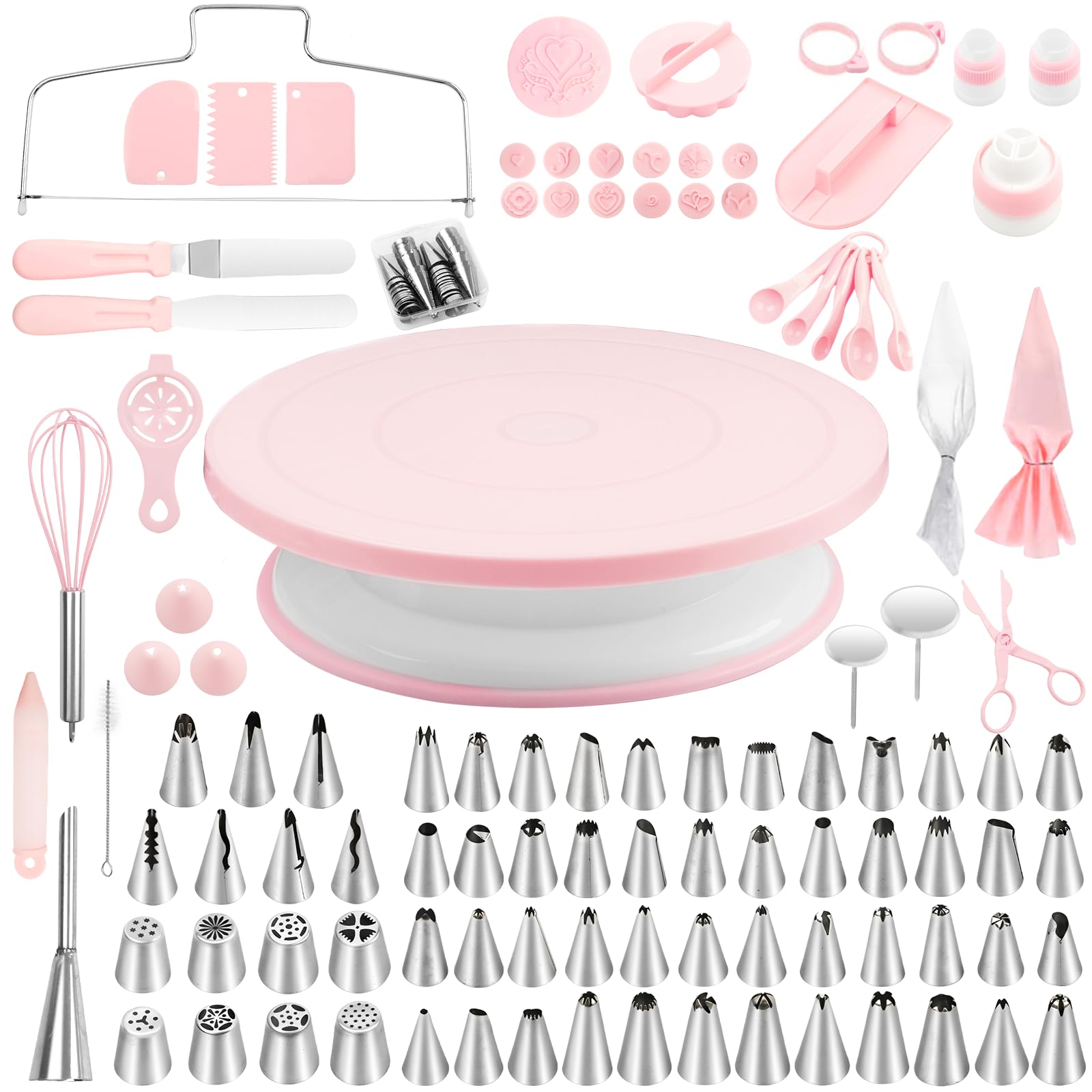 Kit de suministros de decoración de pasteles, tocadiscos para decorar tartas, 64 puntas de glaseado, 32 bolsas de tuberías, 3 rasp