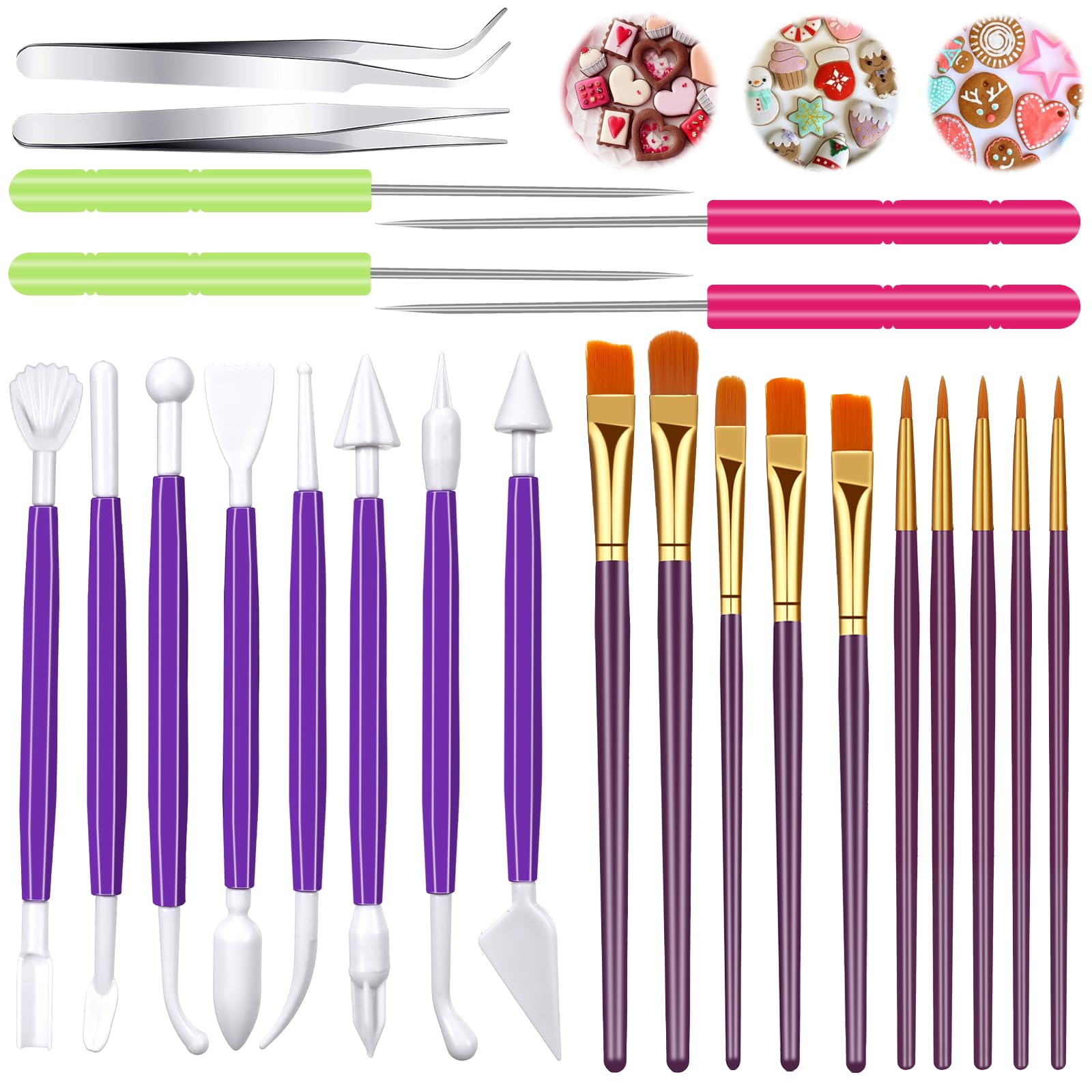 Juego de 24 herramientas de decoración de galletas, juego de raspador de galletas, utensilios de recorte de galletas, cepillo de p
